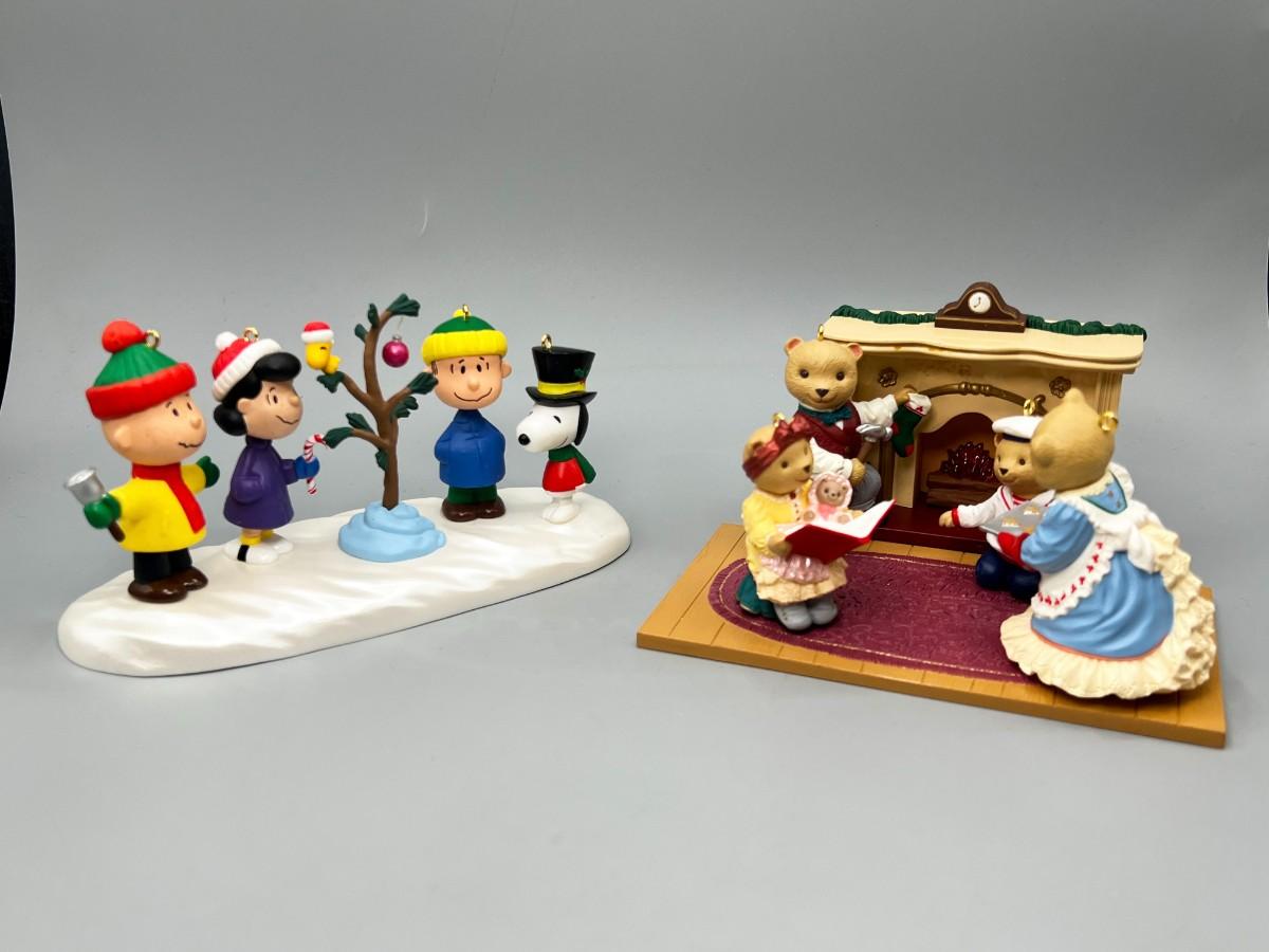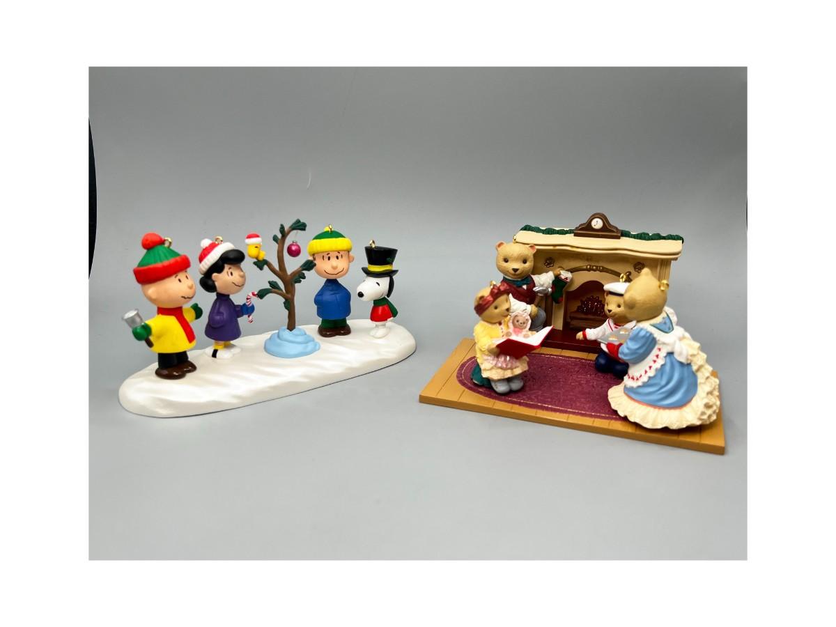 Pair of Collectible Hallmark Ornament Display Sets Peanuts 30th Anniversary Television Special & The Bearingers of Victoria Circle