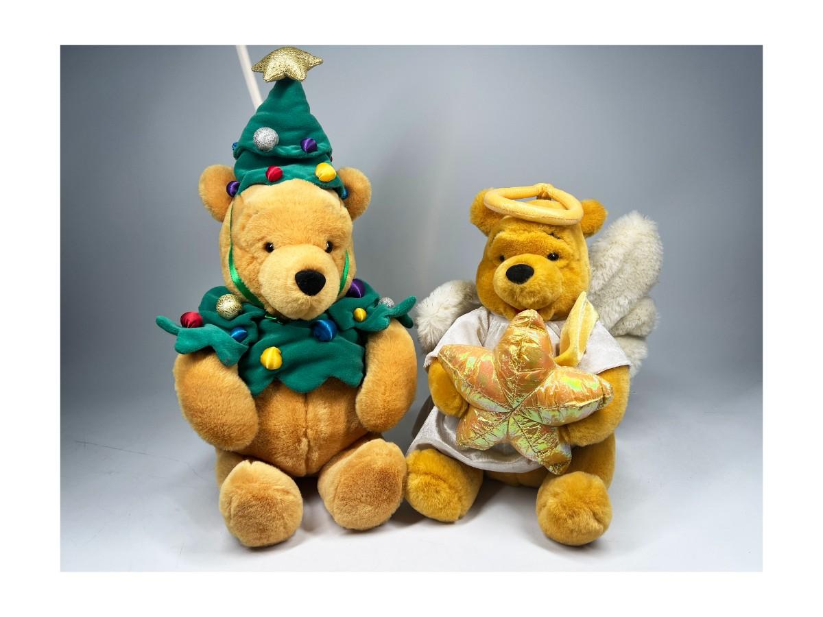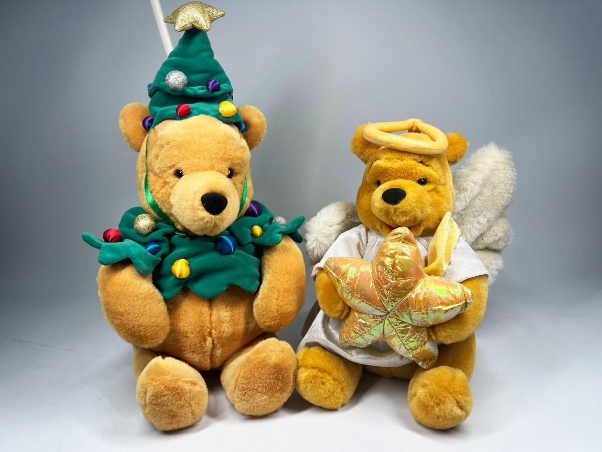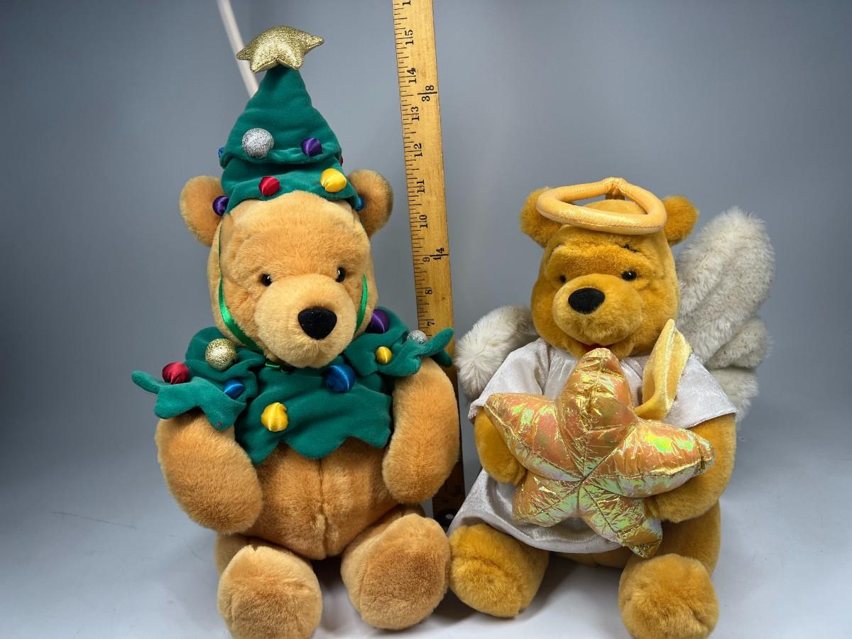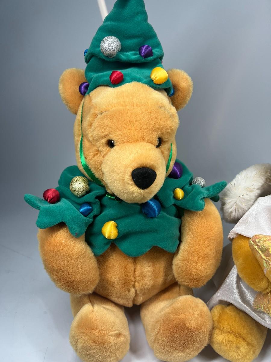 Pair of Collectible Winnie the Pooh Holiday Christmas Tree Plush & Angel Tree Topper