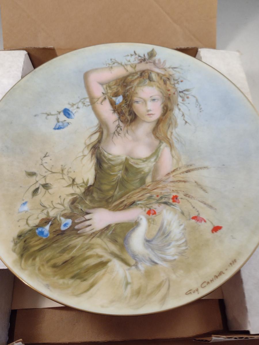 Pair of Collector's Plates Female and Floral Designs- Original Boxes Included