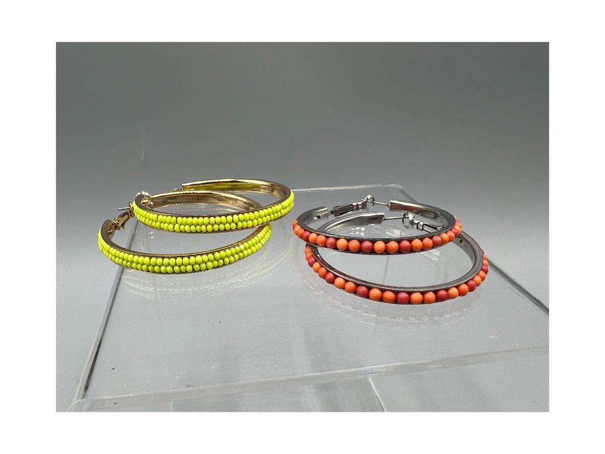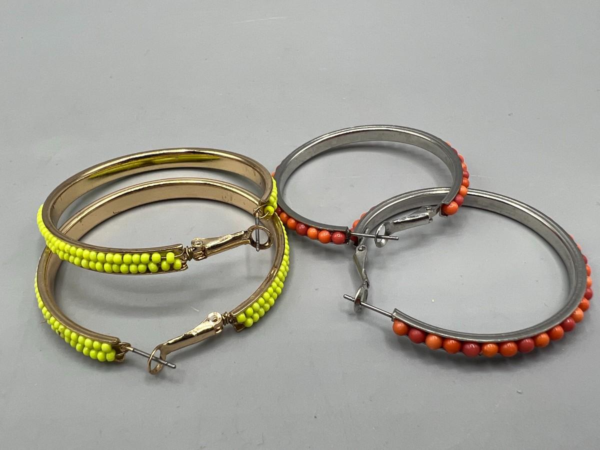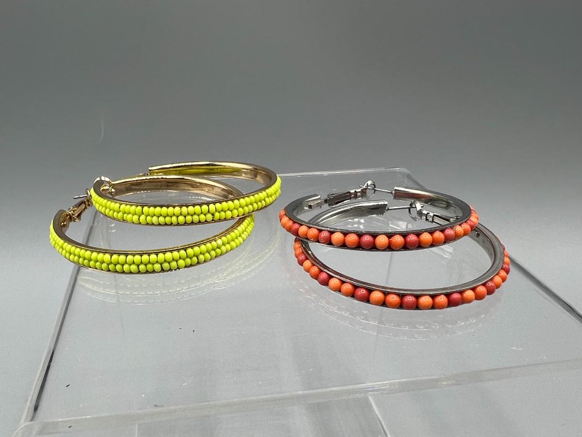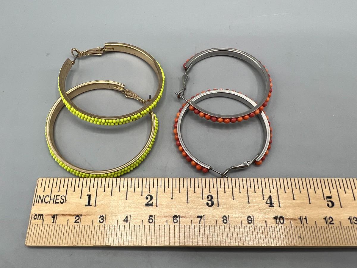 Pair of Colorful Bead Hoop Earrings, there is no signifncant damage to the earrings and is in good wearable condition. Check pictures for more details and for sizing.