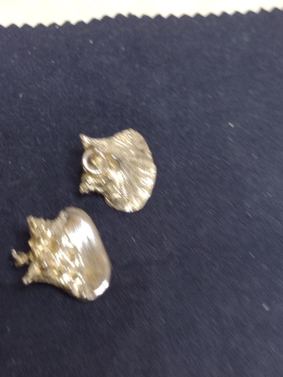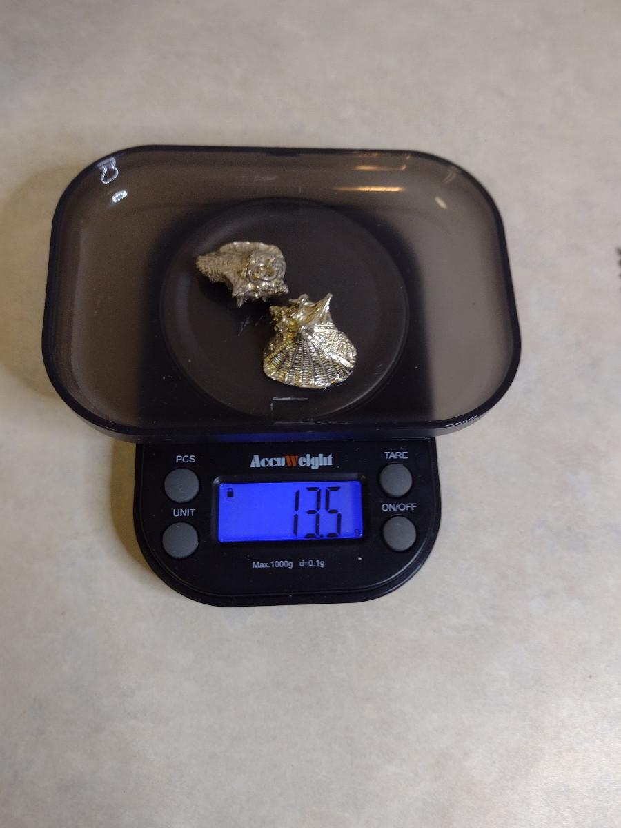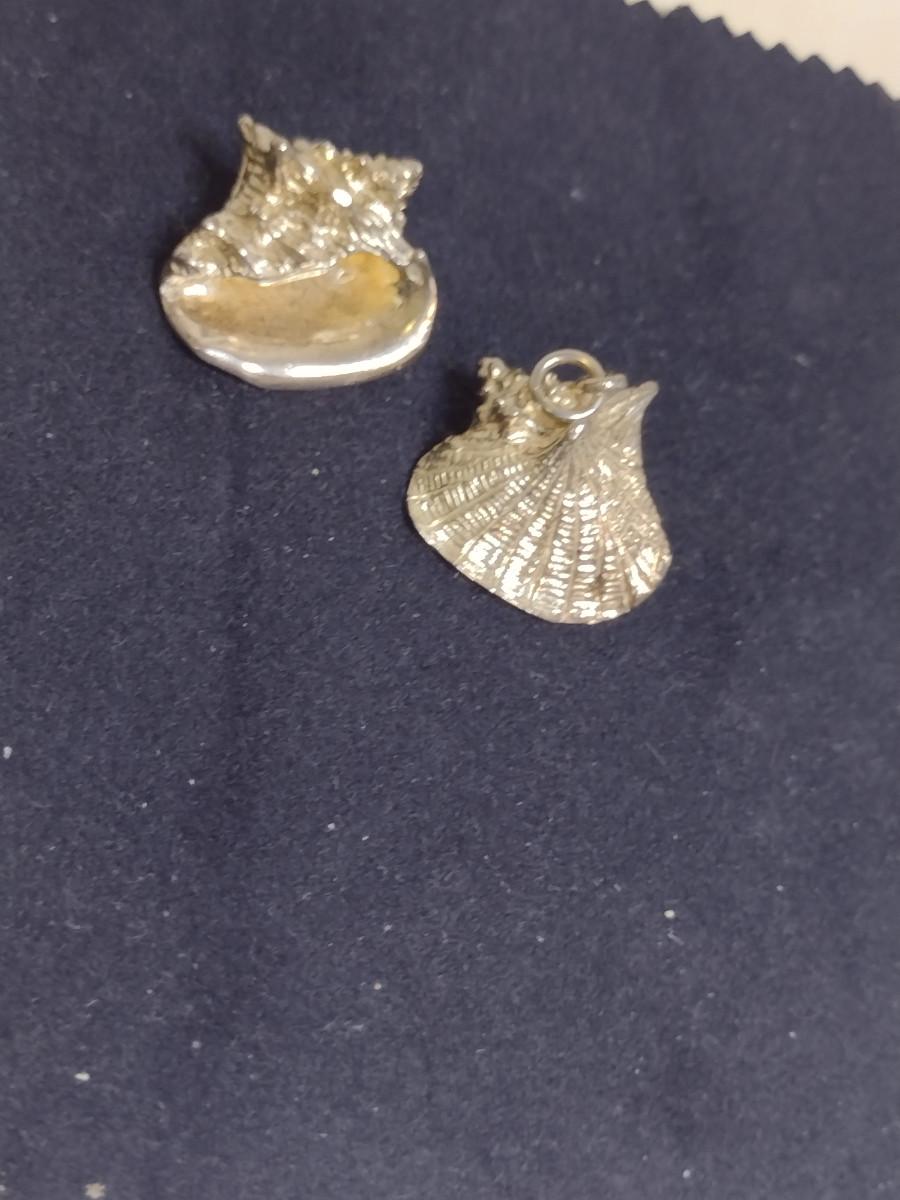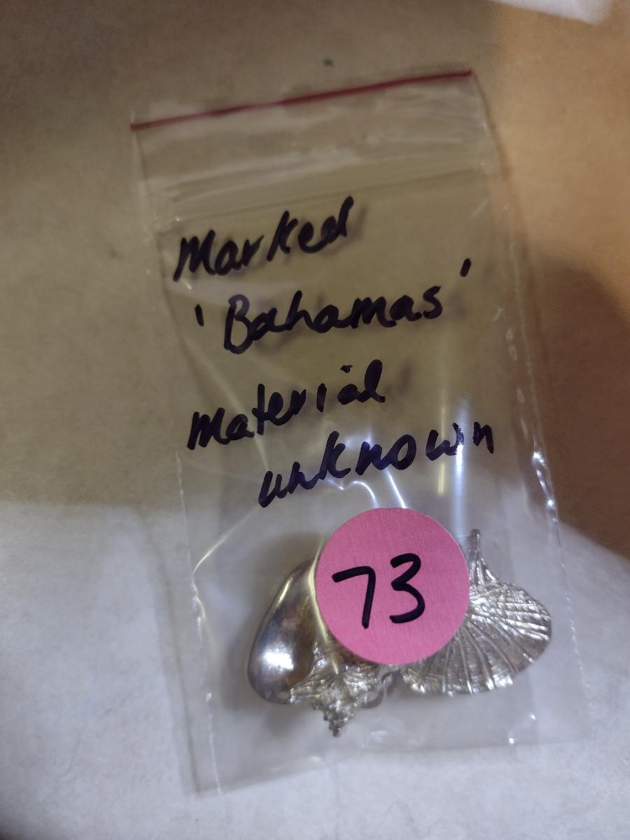 Pair of Conch Shell Design Pendants/Charms- Marked 'Bahamas' (#73). Material unknown. A 6.75% NC sales tax will be added to the jewelry invoice amount at the end of the sale. Coins are exempt from state sales tax.