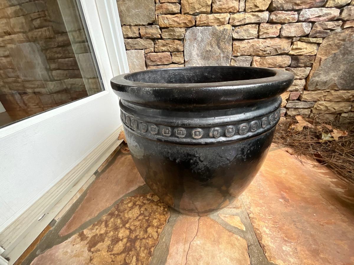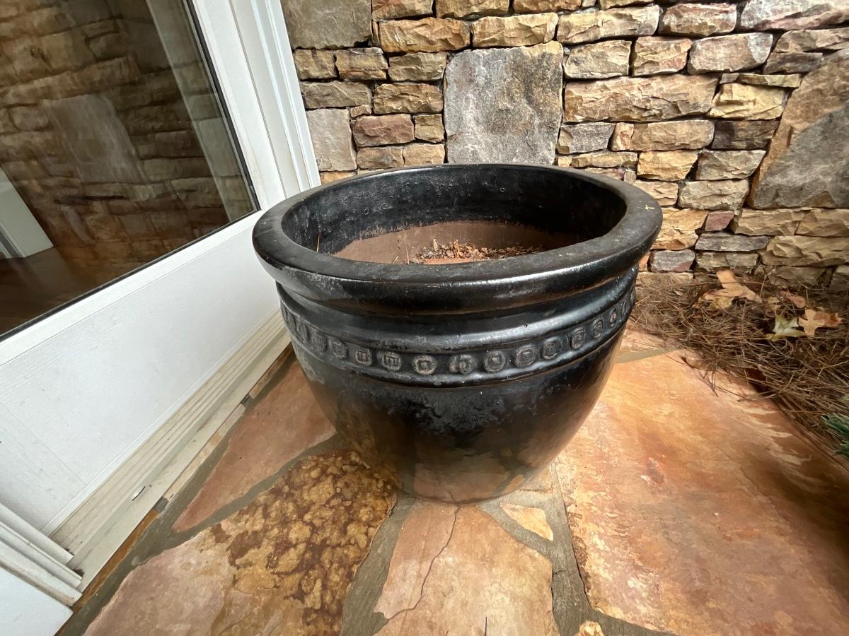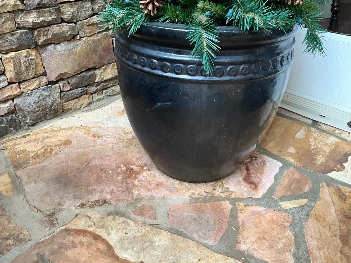 Concrete pots 19 inches round 19 inches tall 42 inches tall with decorations