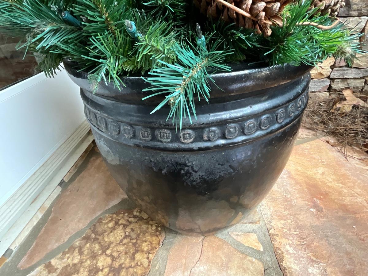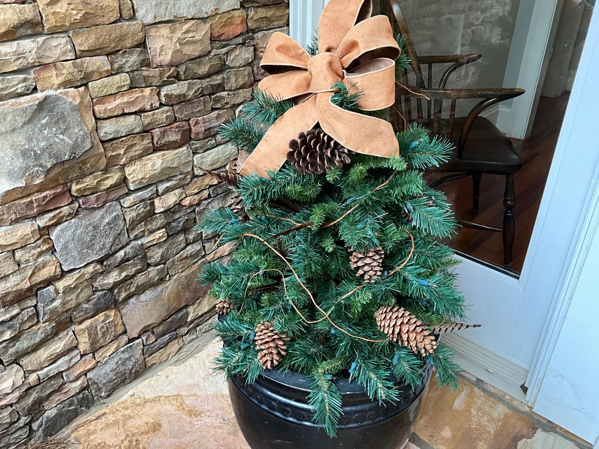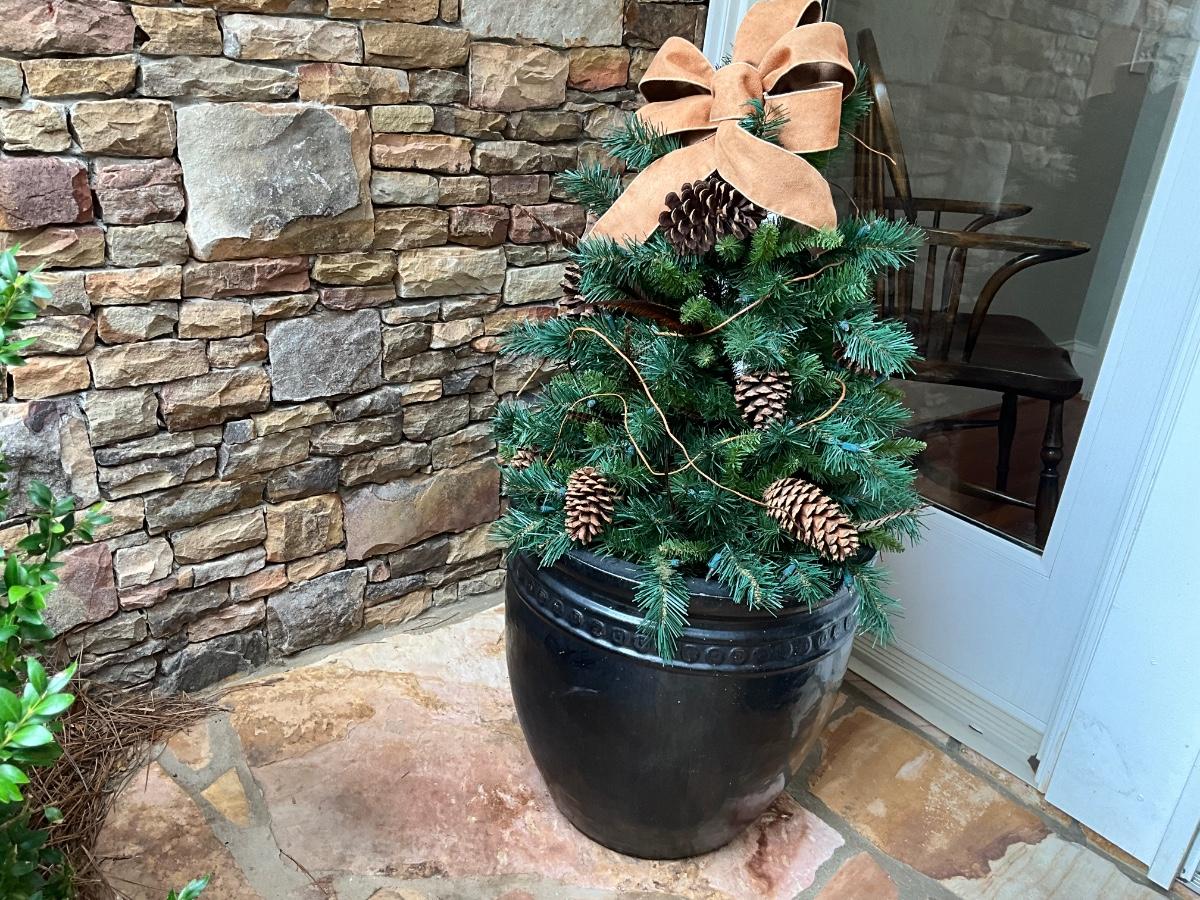 Pots can be used for plants and come with these pre-lit Christmas tree inserts.