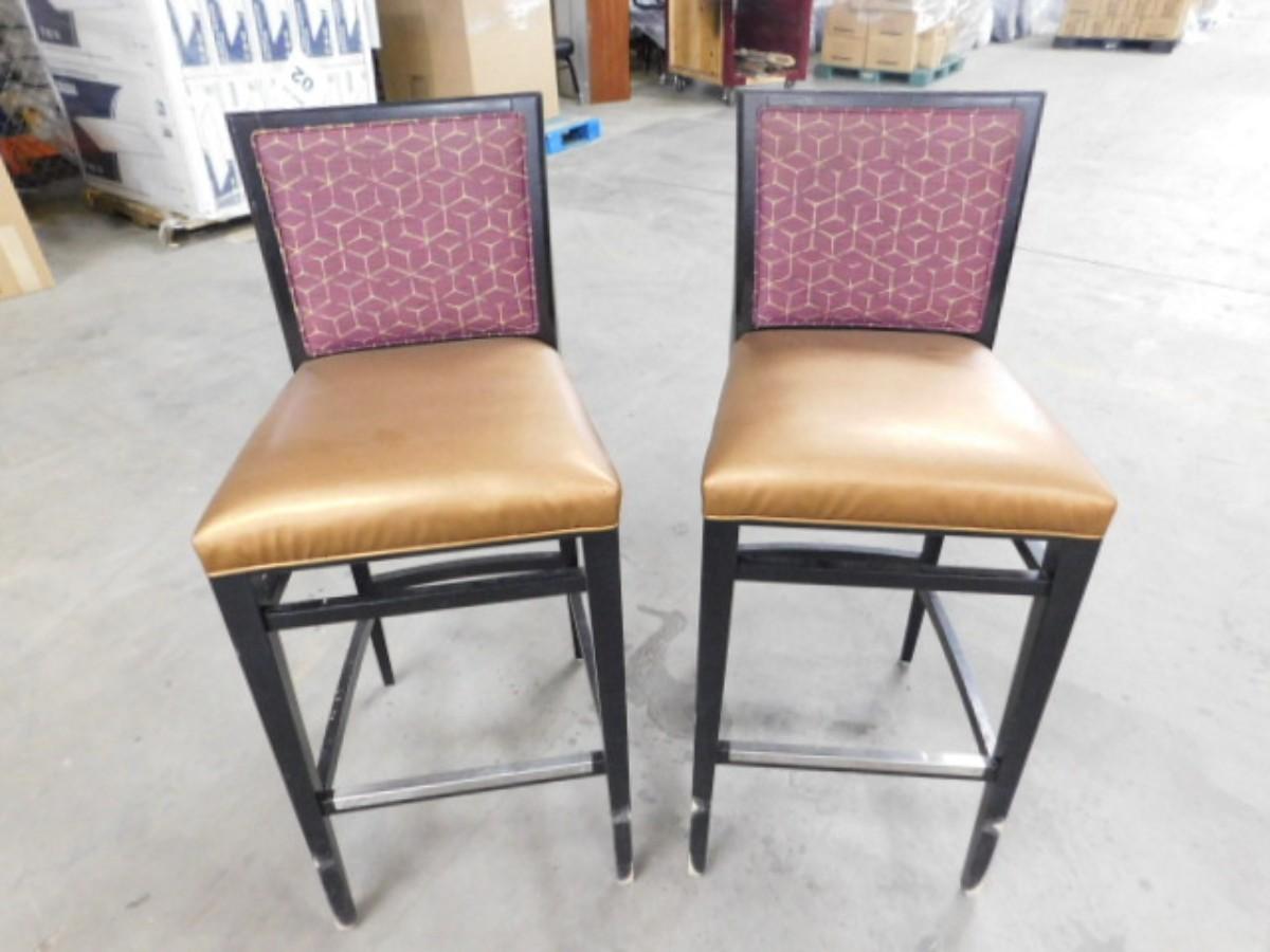 Pair of Contemporary Commercial Grade Bar Stool Chairs by Kellex. Expect some wear or scratches to finish as shown. Shipping option available via freight or local mover at Buyer's expense. Buyer must have all shipping scheduled within the stated dates and times of pickup. Recommended local mover is Beaty Bros. Moving 828-201-2982