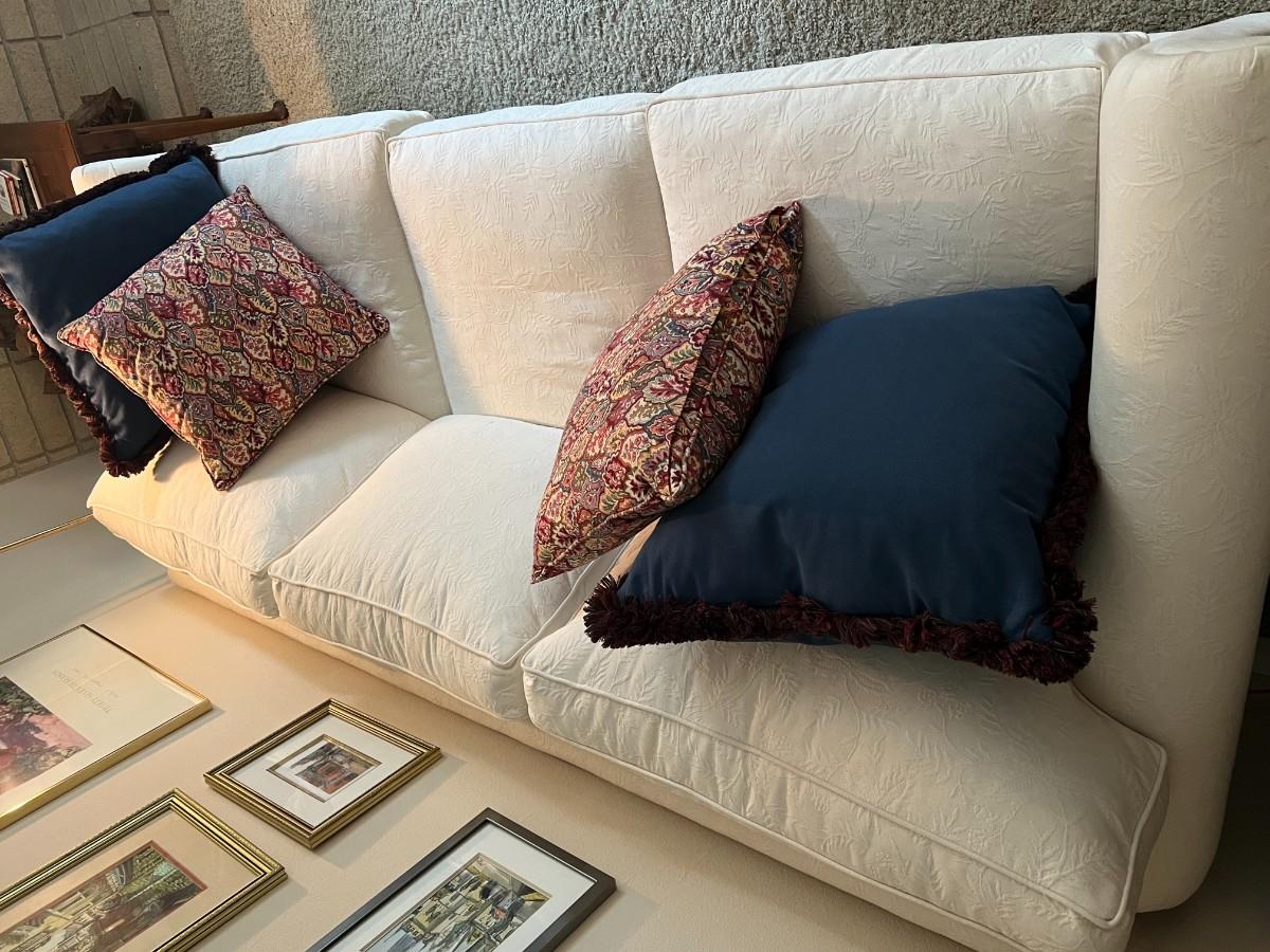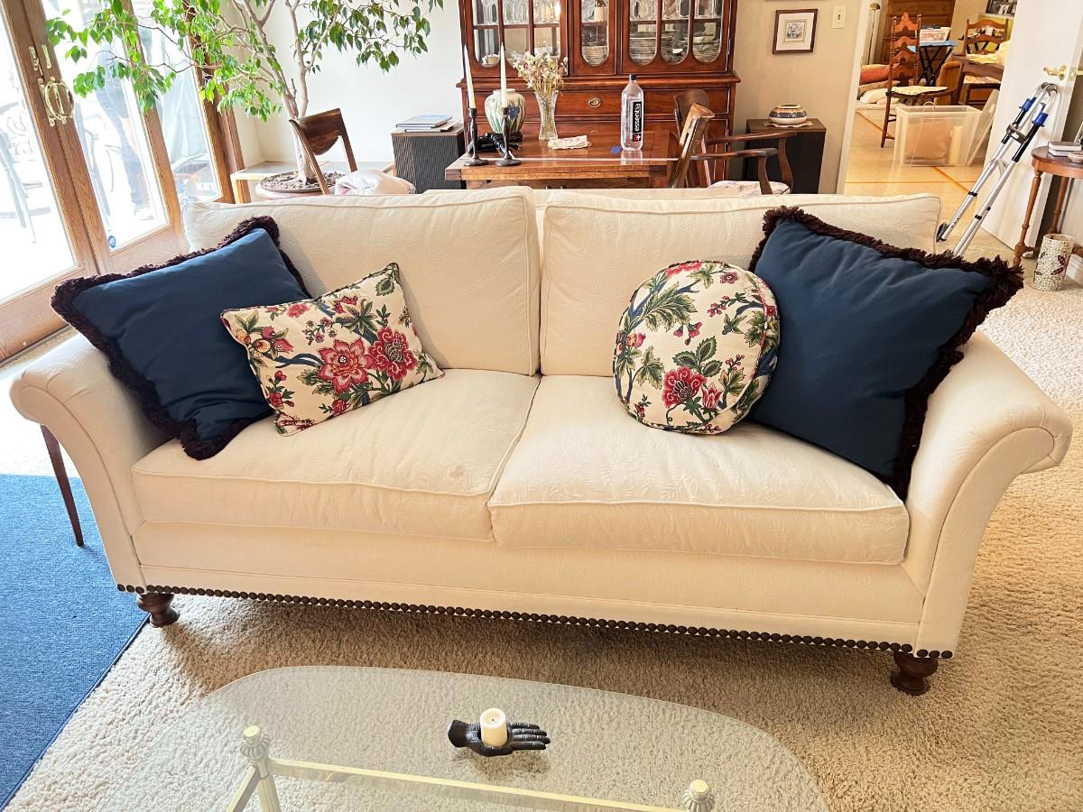 Pair of Contemporary White Couches Nail Head Trim Sofa & Love Seat
