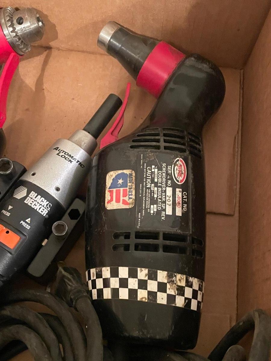 2 Corded Sioux Electric Drills + 1 Black & Decker Powerdriver screwdriver