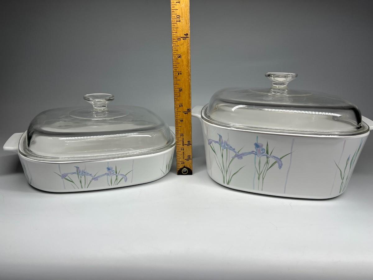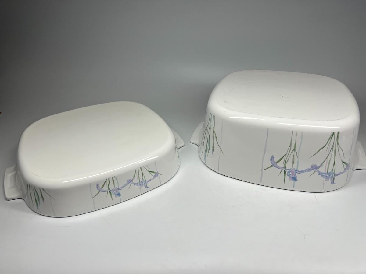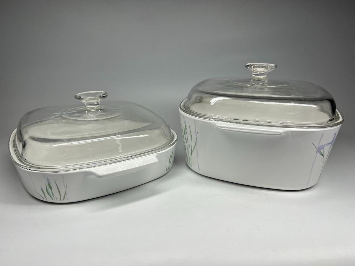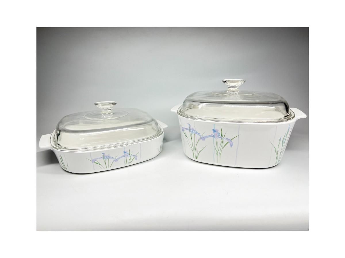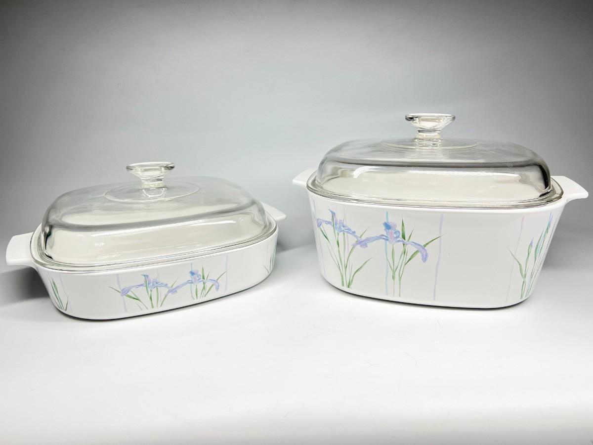 Pair of Corningware Shadow Iris Casserole Dish Kitchenware Bakeware