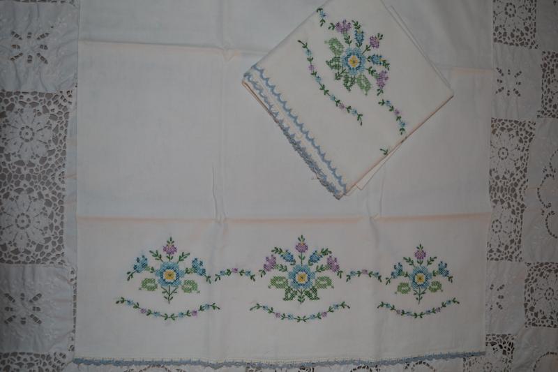 Pair of cross stitch pillow cases