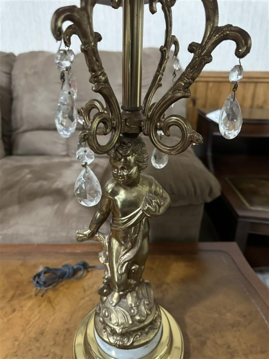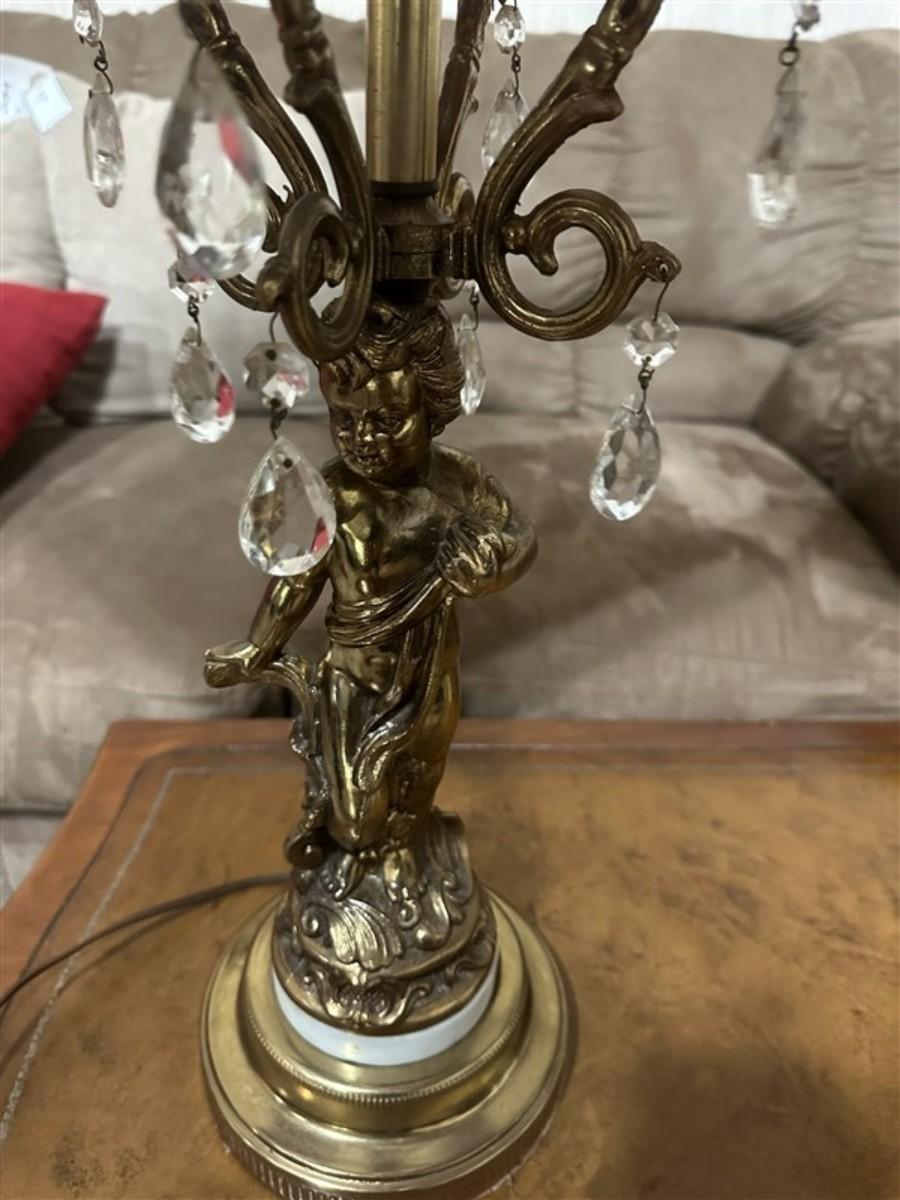 Pair of Crystal Drop Cherub Lamps (Bronze or Brass)