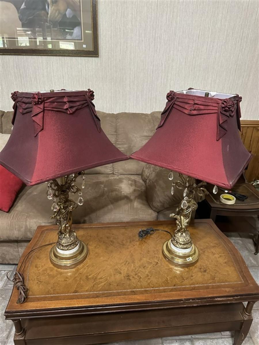 43 Pair of Crystal Drop Cherub Lamps (Bronze or Brass)