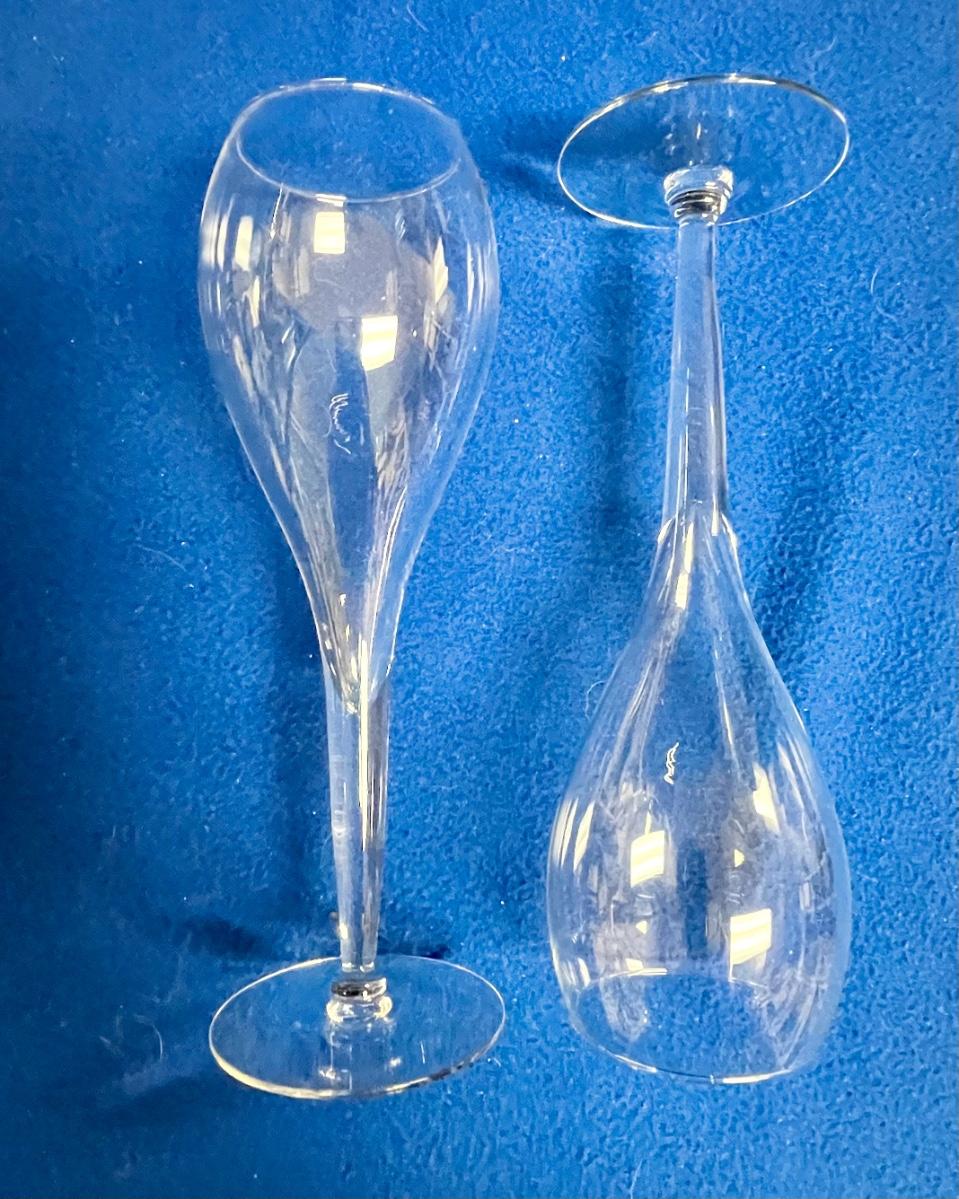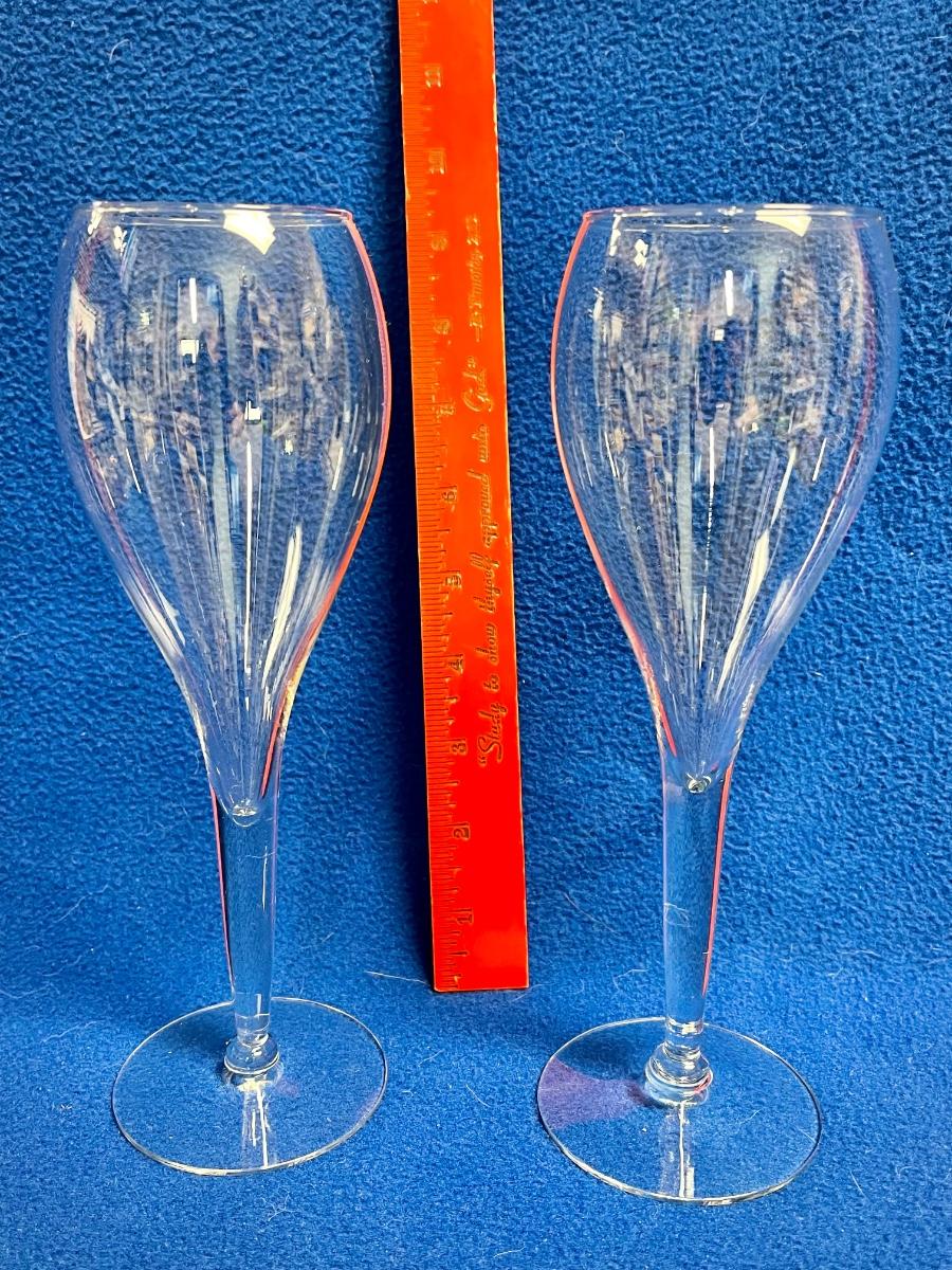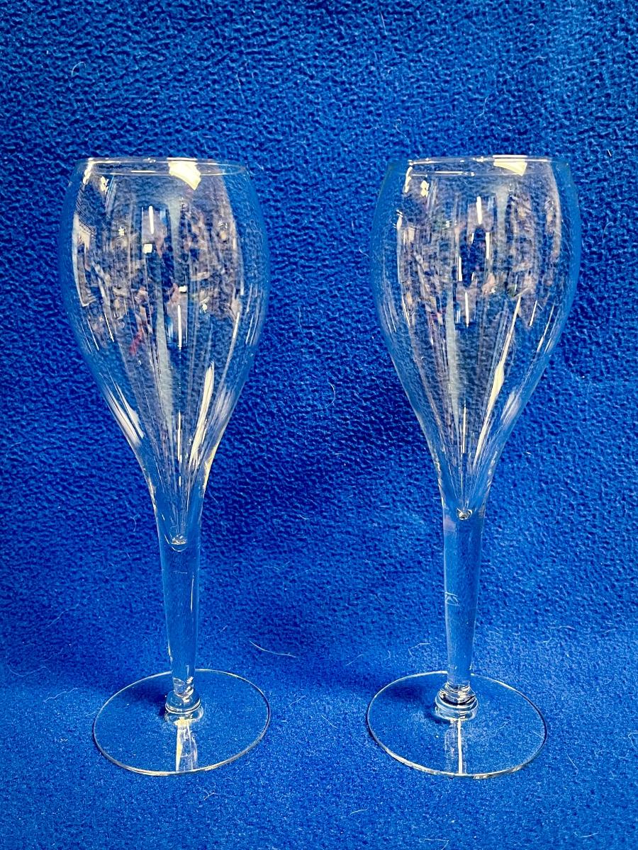 Pair of Crystal Glass Champagne Flutes Wine Glasses