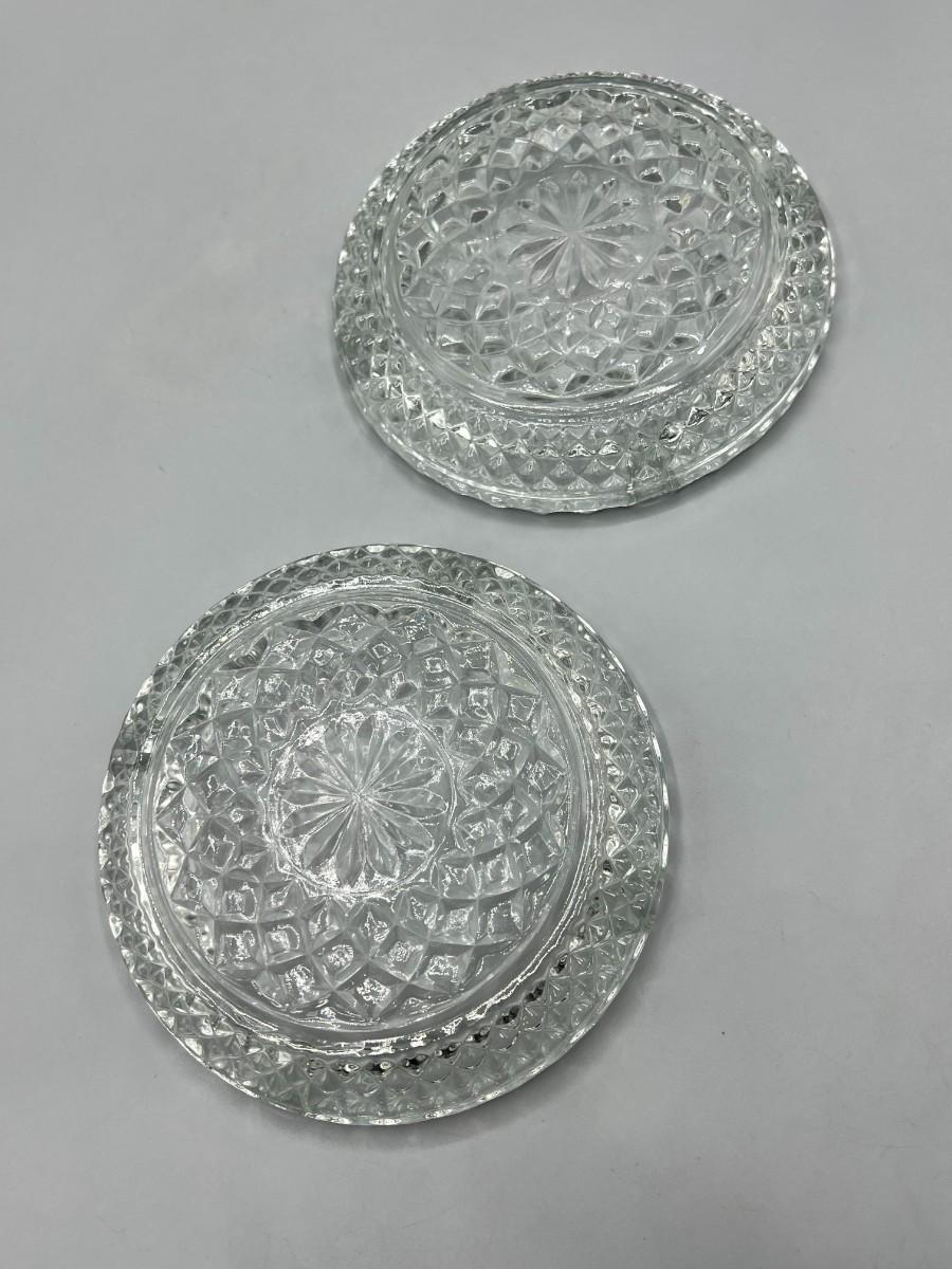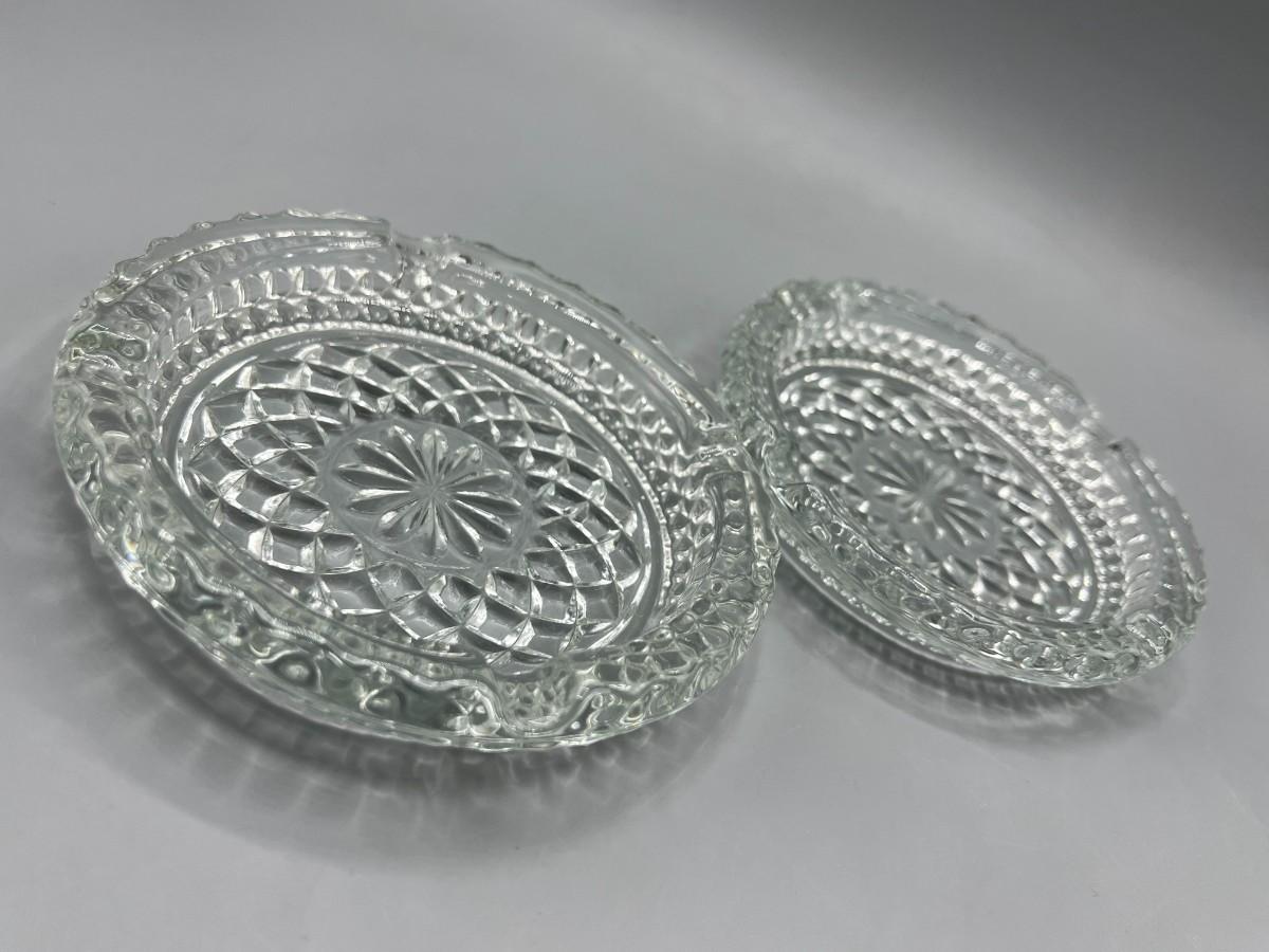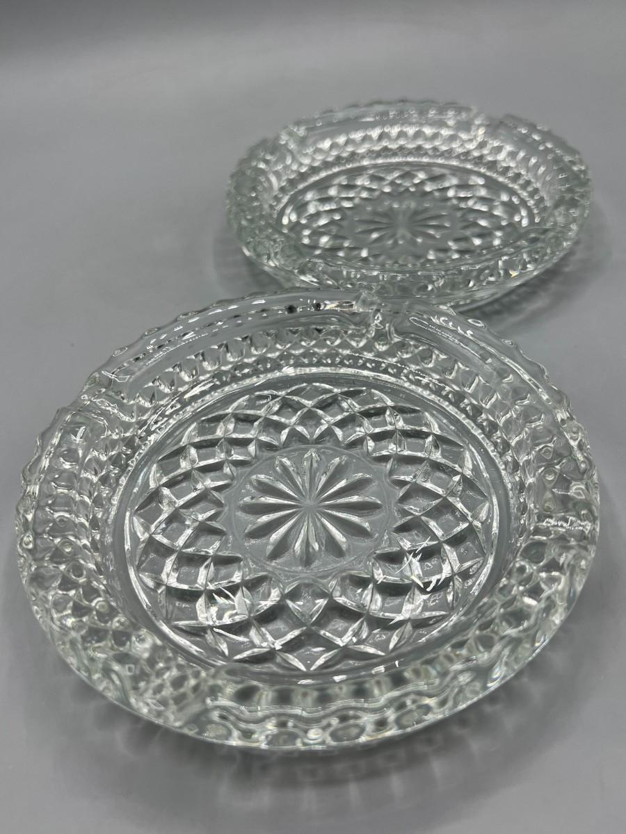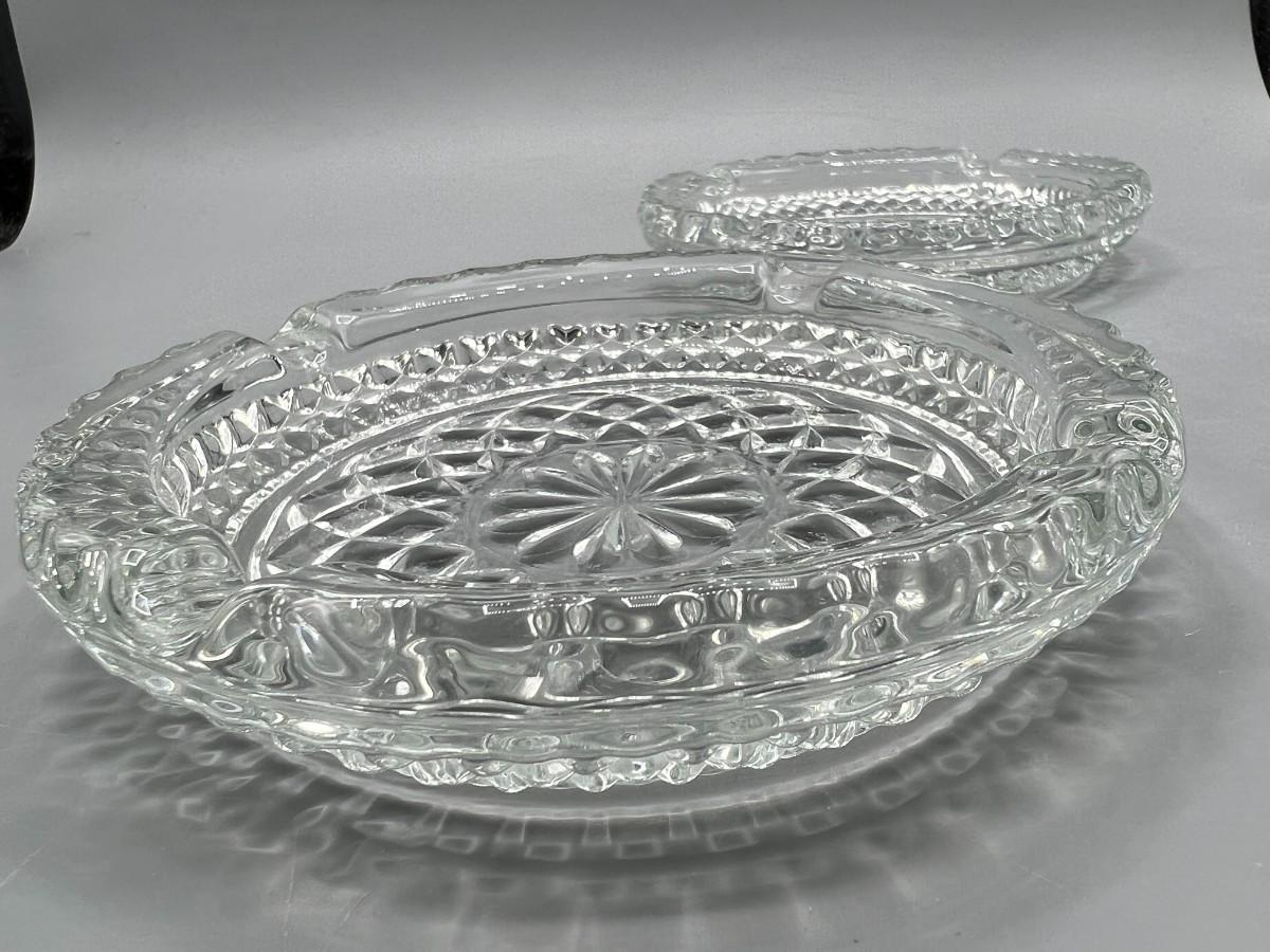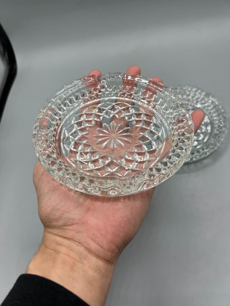 Pair of Crystal Glass Mid Century Art Deco Cigarette Ashtrays