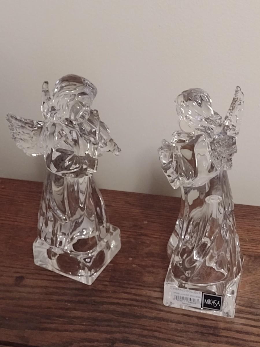 Pair of Crystal Mikasa Angels Playing Musical Instruments