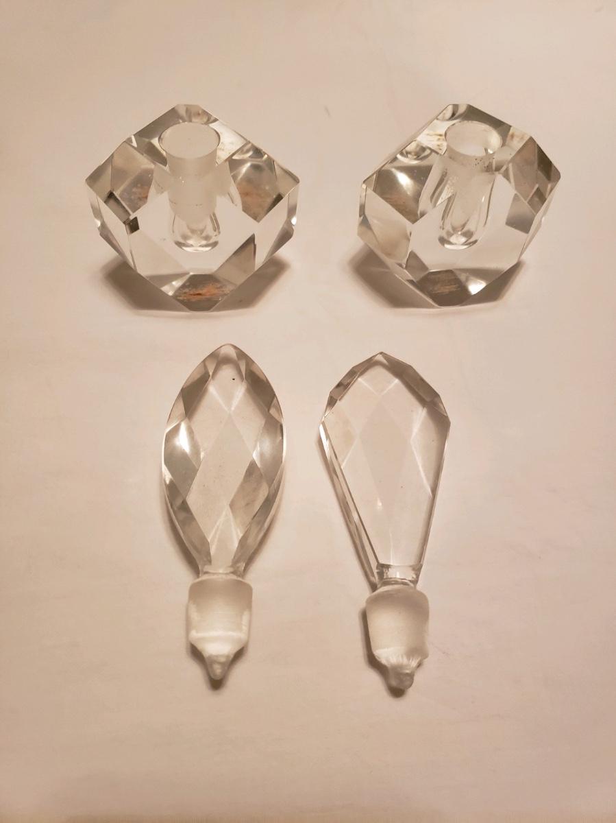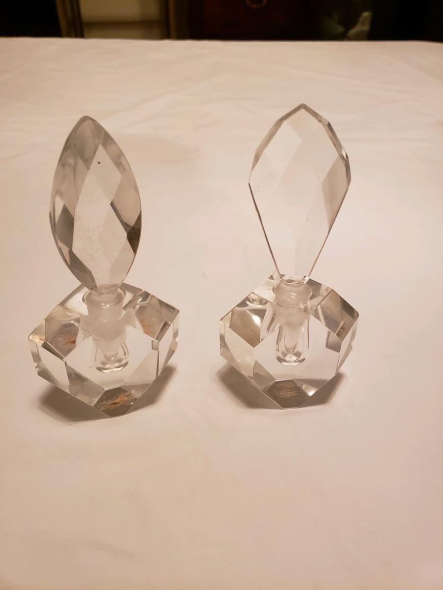 Pair of crystal perfume bottles. They both stand approximately 5" tall