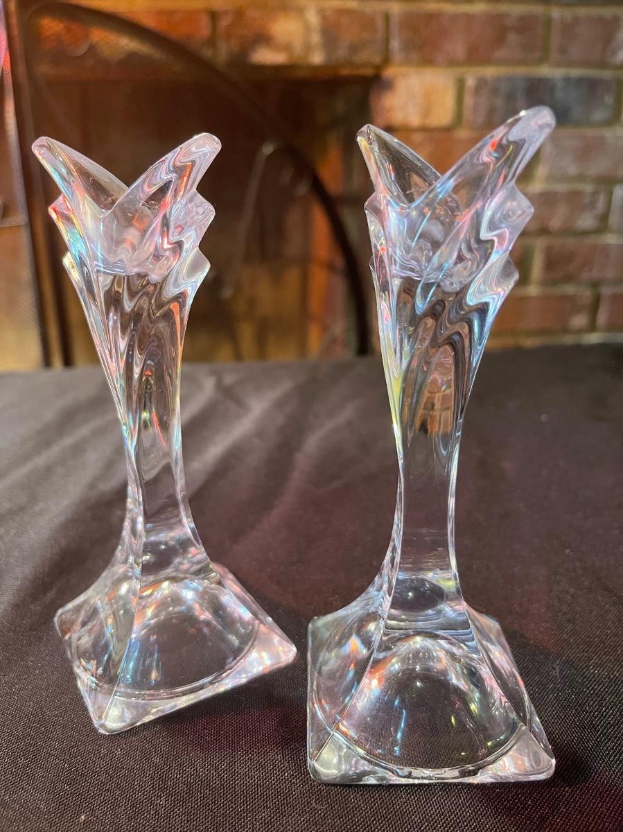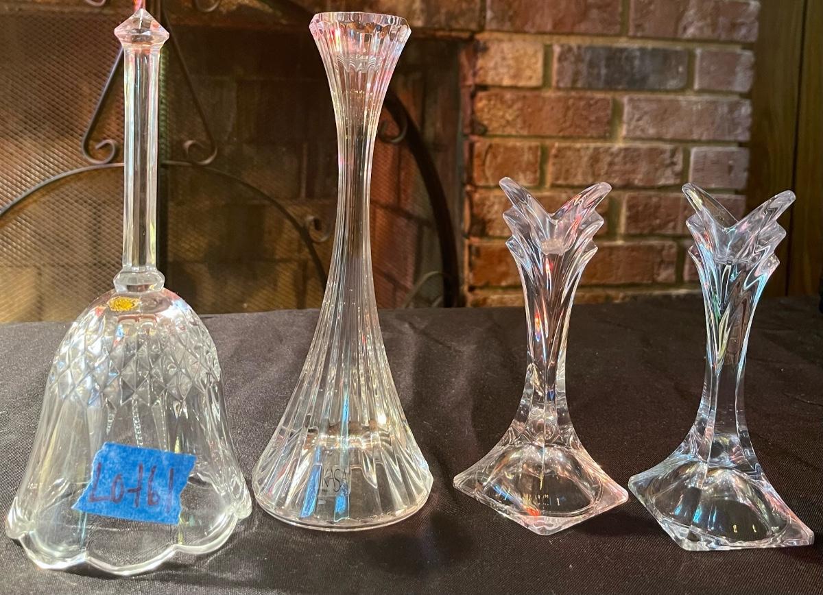 Pair of crystal candle holders, Mikasa candle stick holder, crystal bell