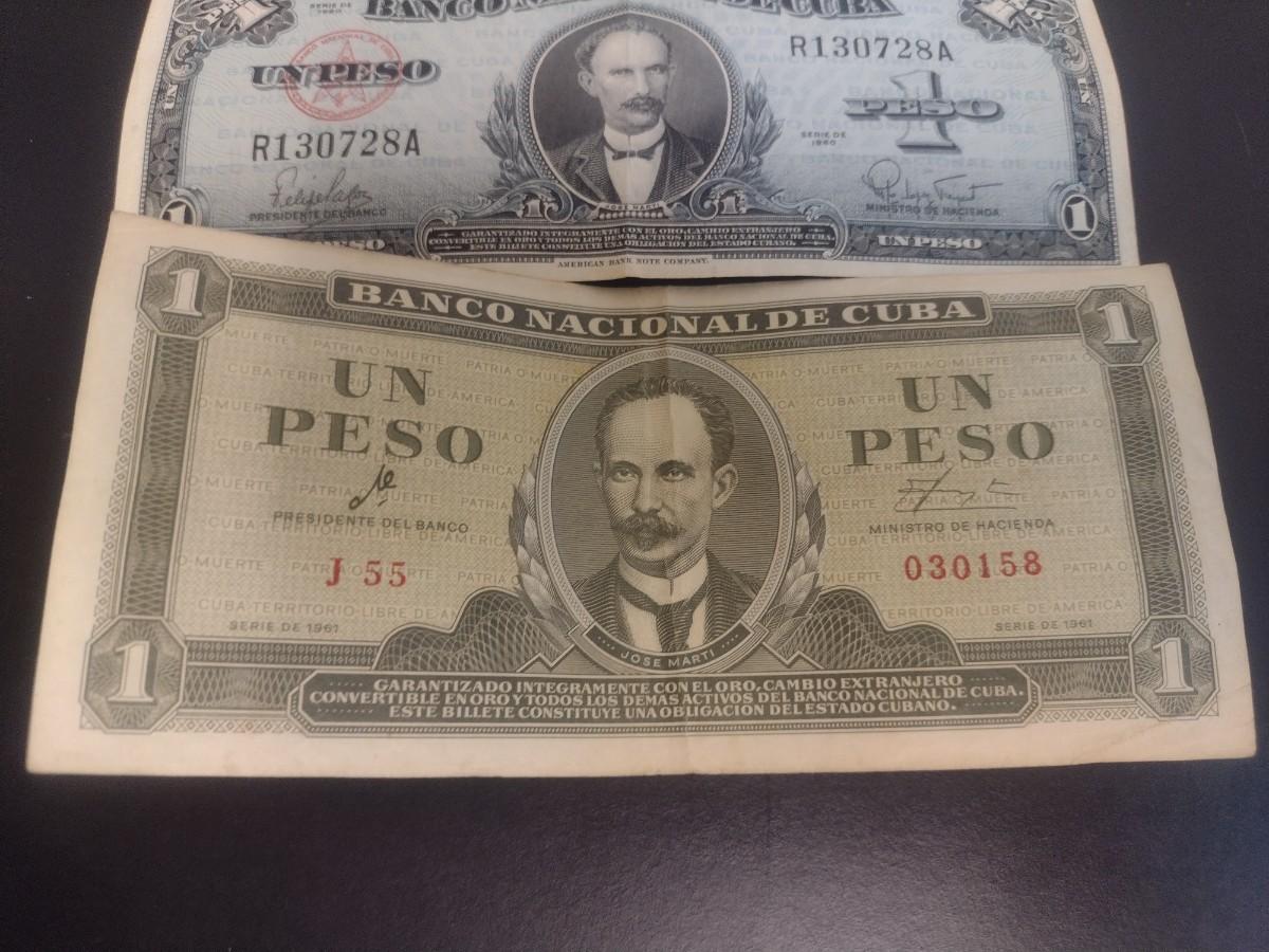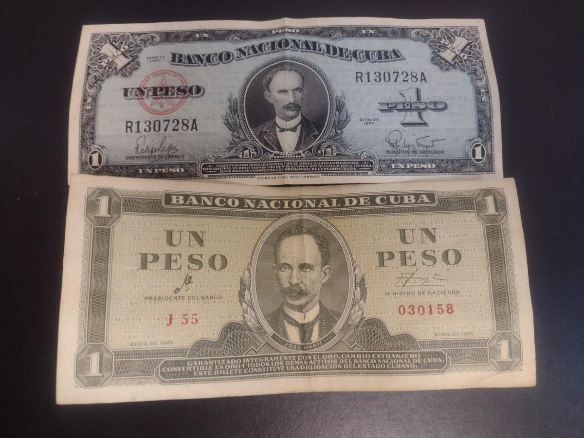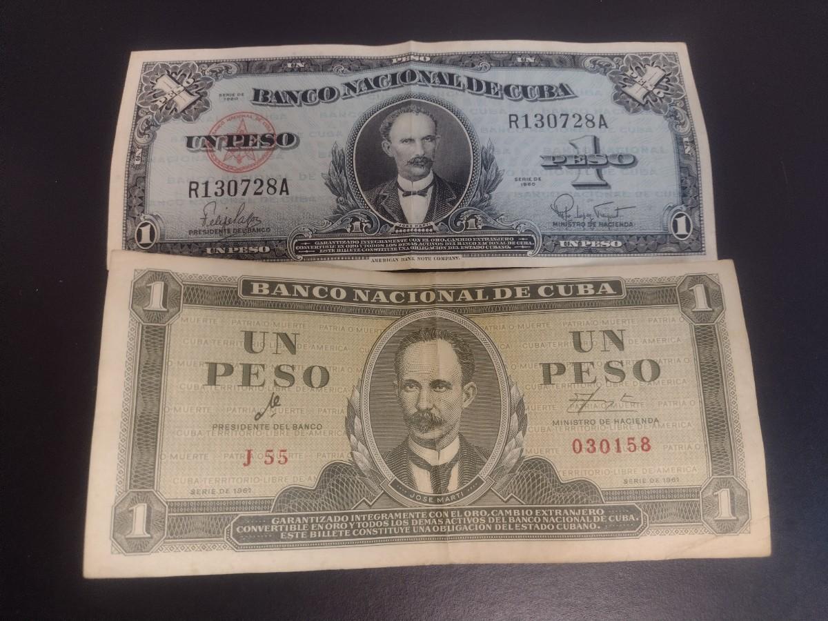 Pair of Cuban National Paper Currency One Peso Bills 1960, 1961 Circulated Condition (148)