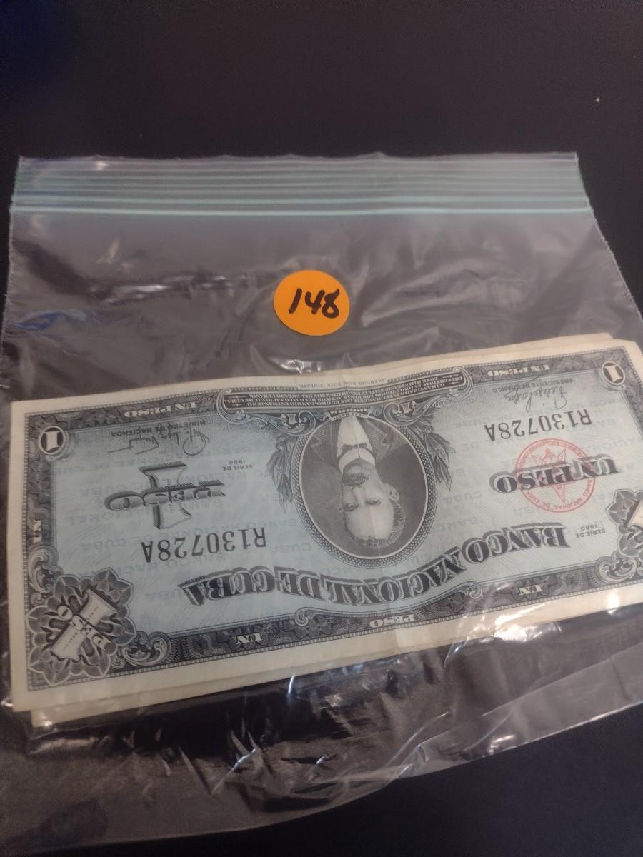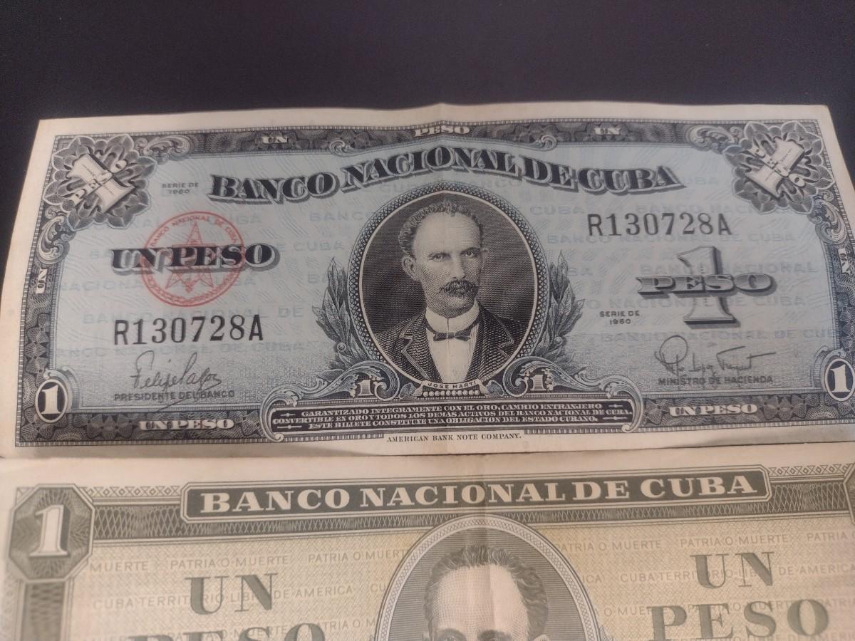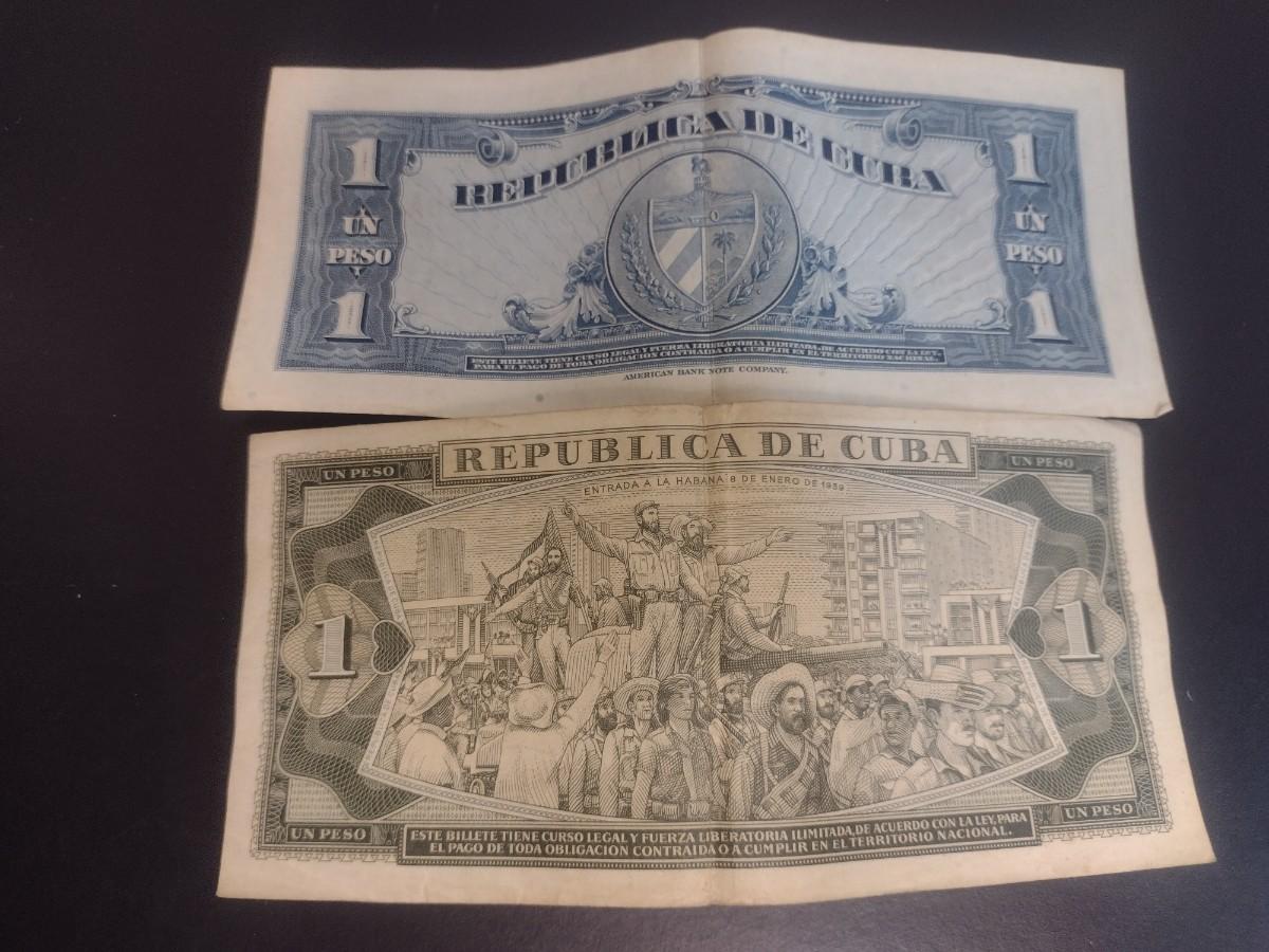 Pair of Cuban National Paper Currency One Peso Bills 1960, 1961 Circulated Condition (148)