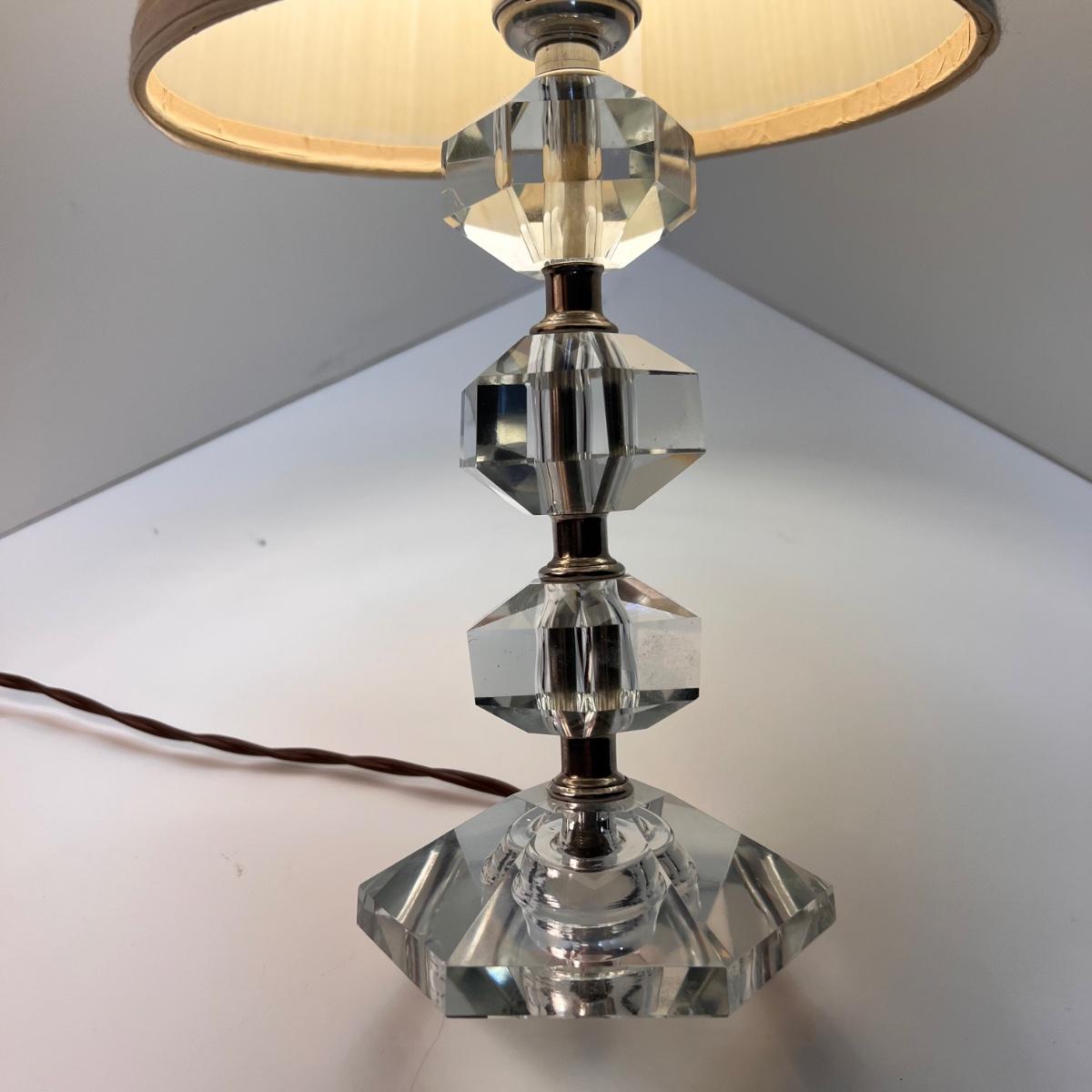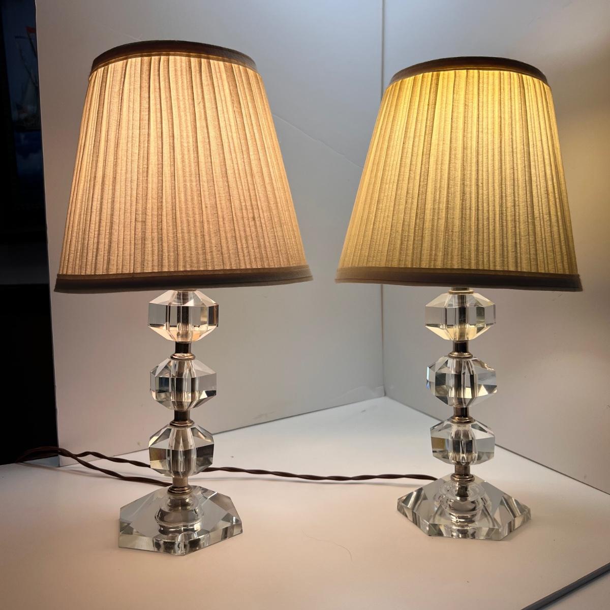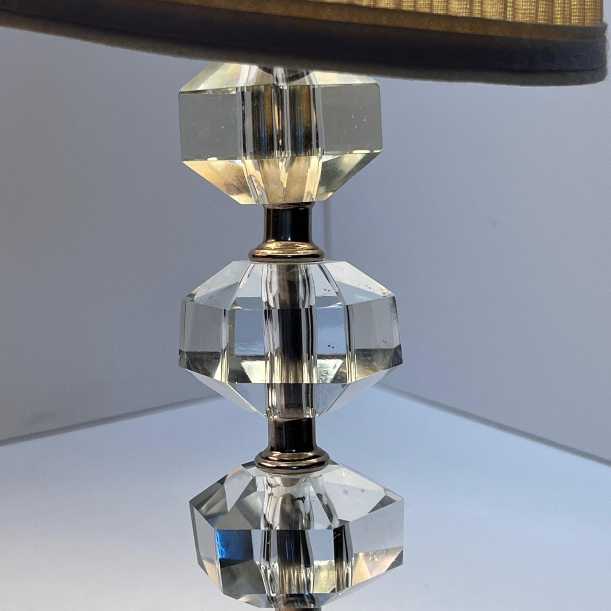 Pair of Cut Crystal Glass MCM Lamps