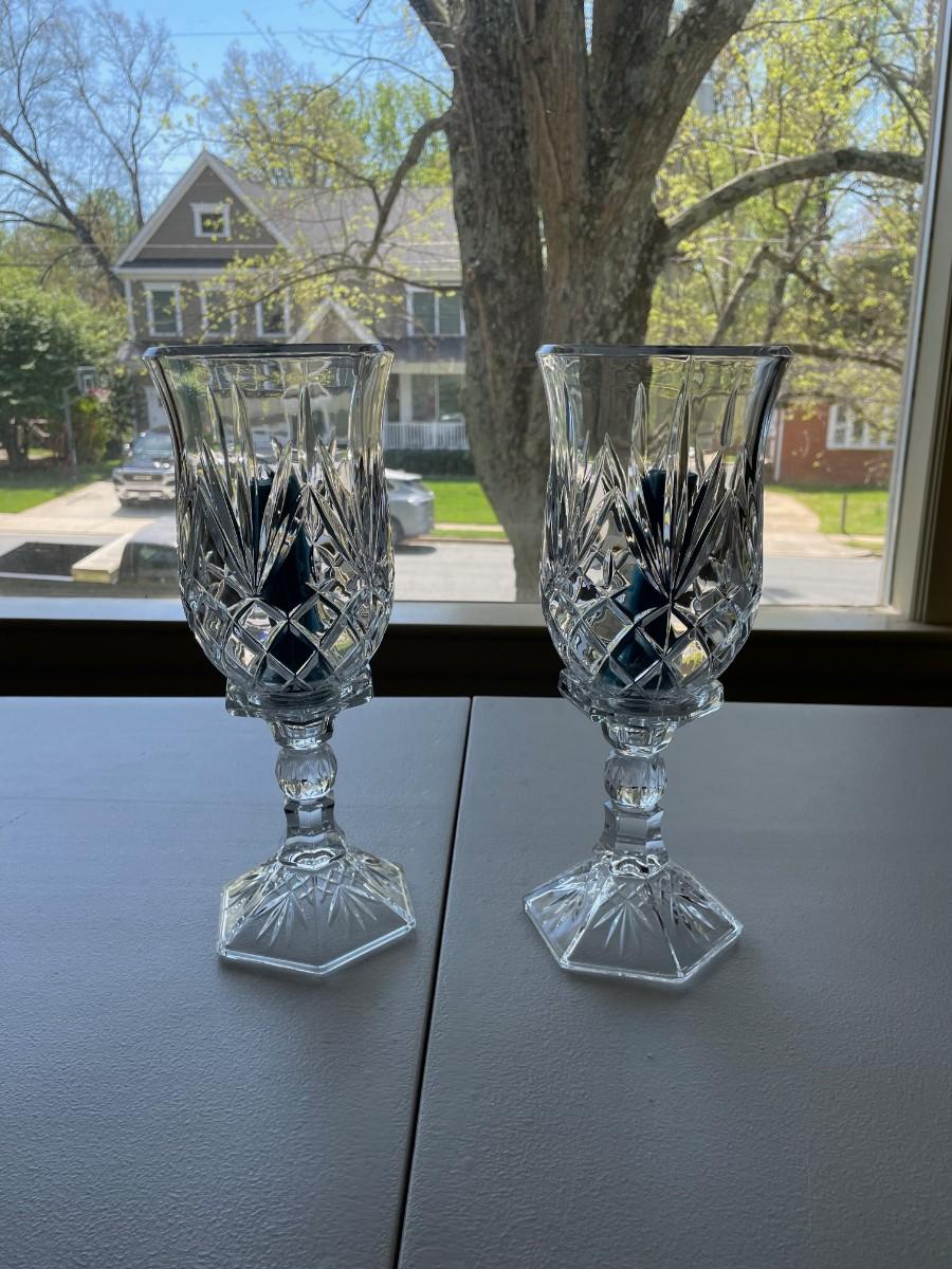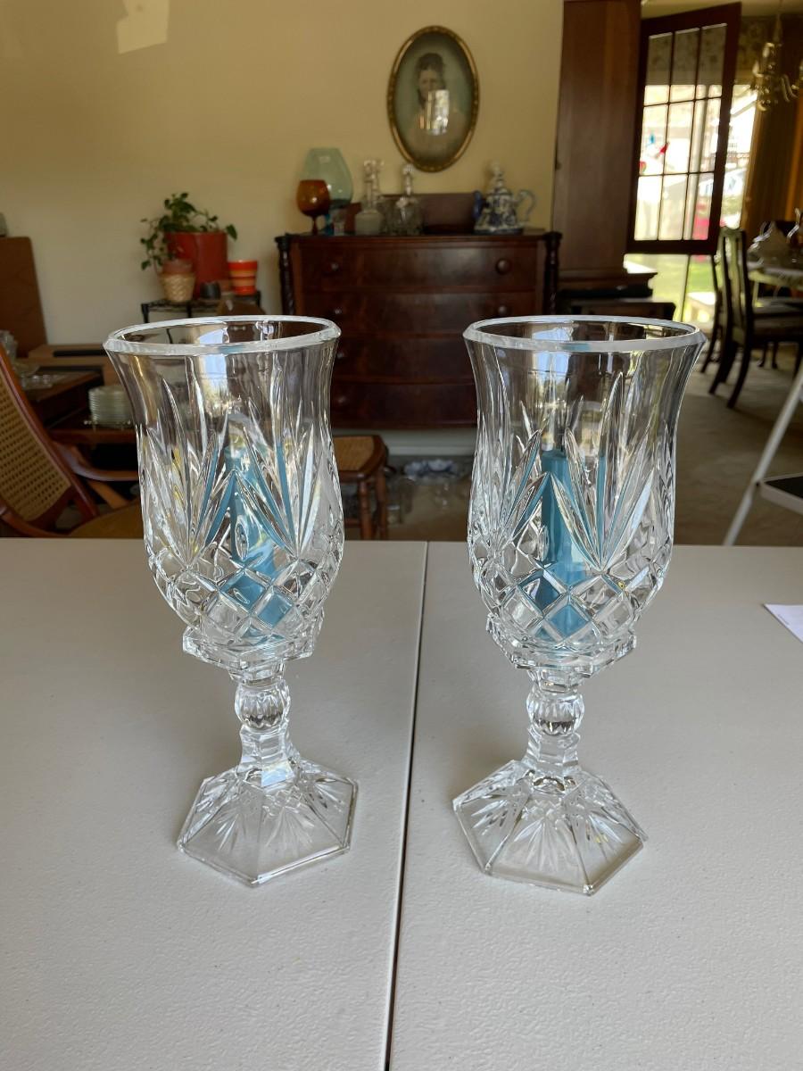 Pair of Cut Glass Crystal Vintage Candle Holders