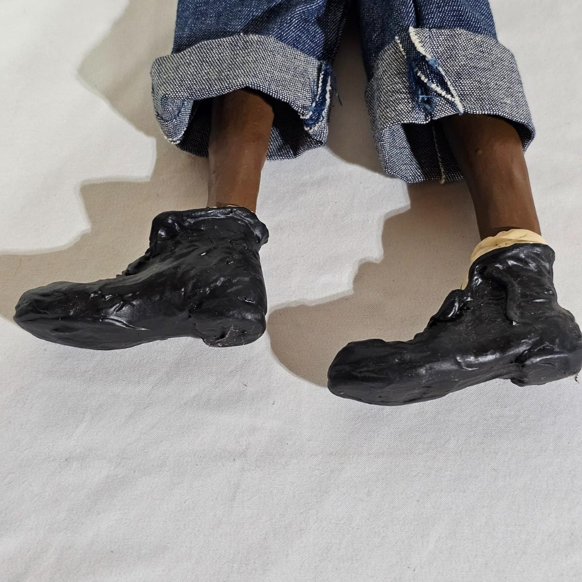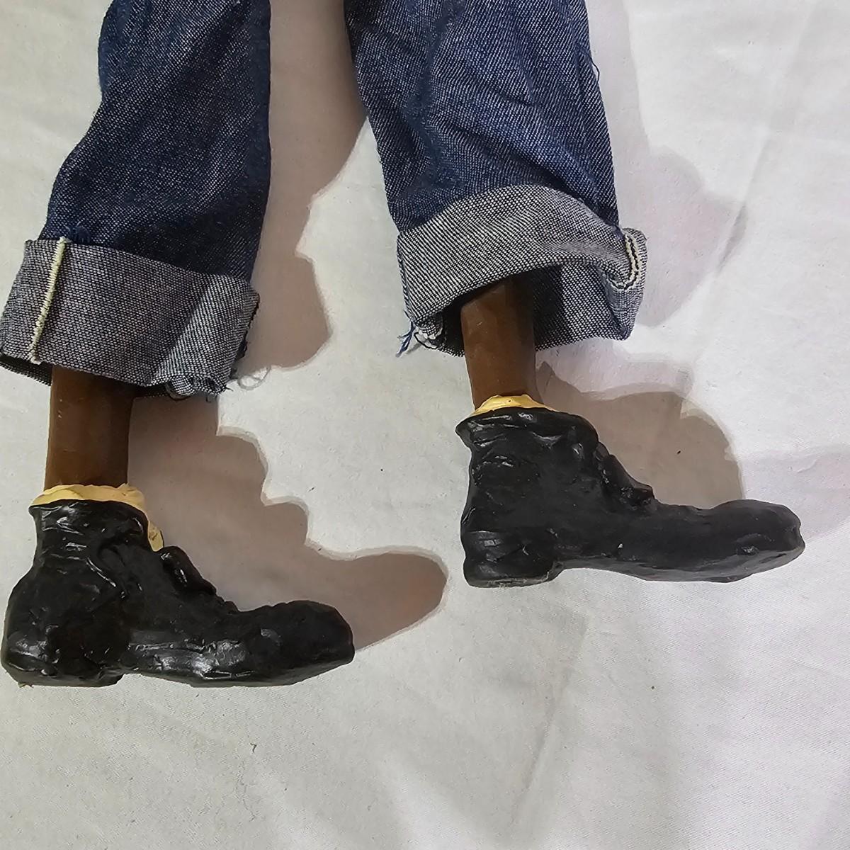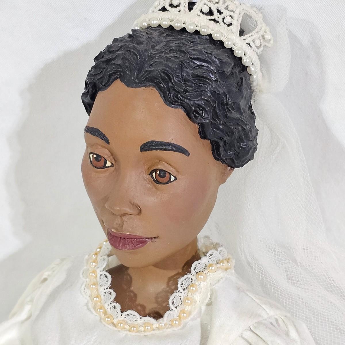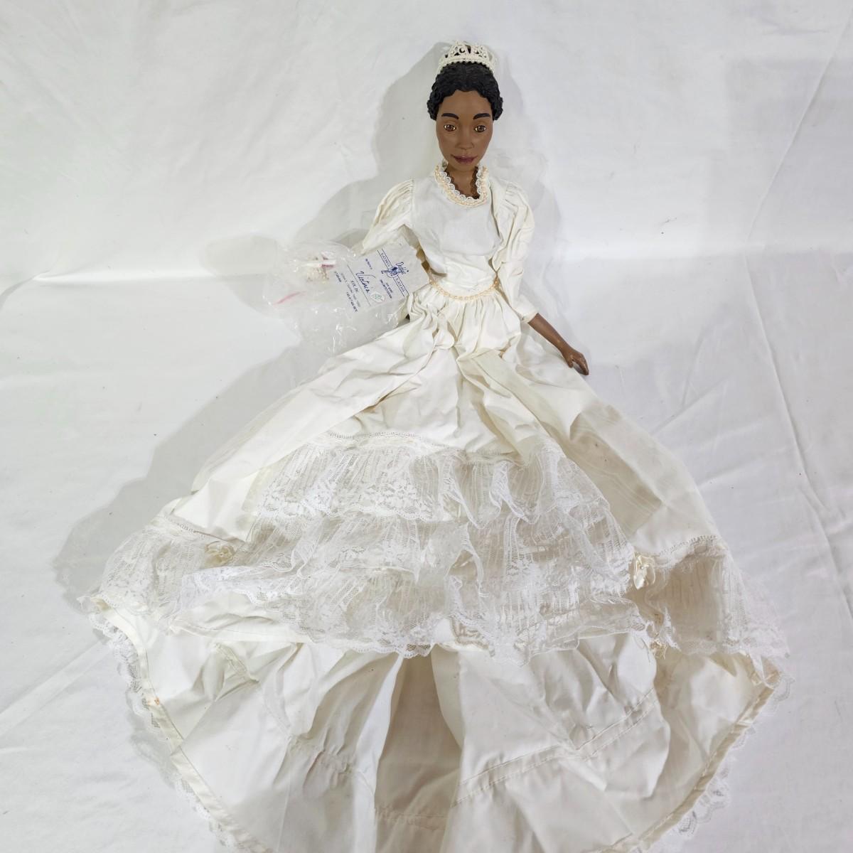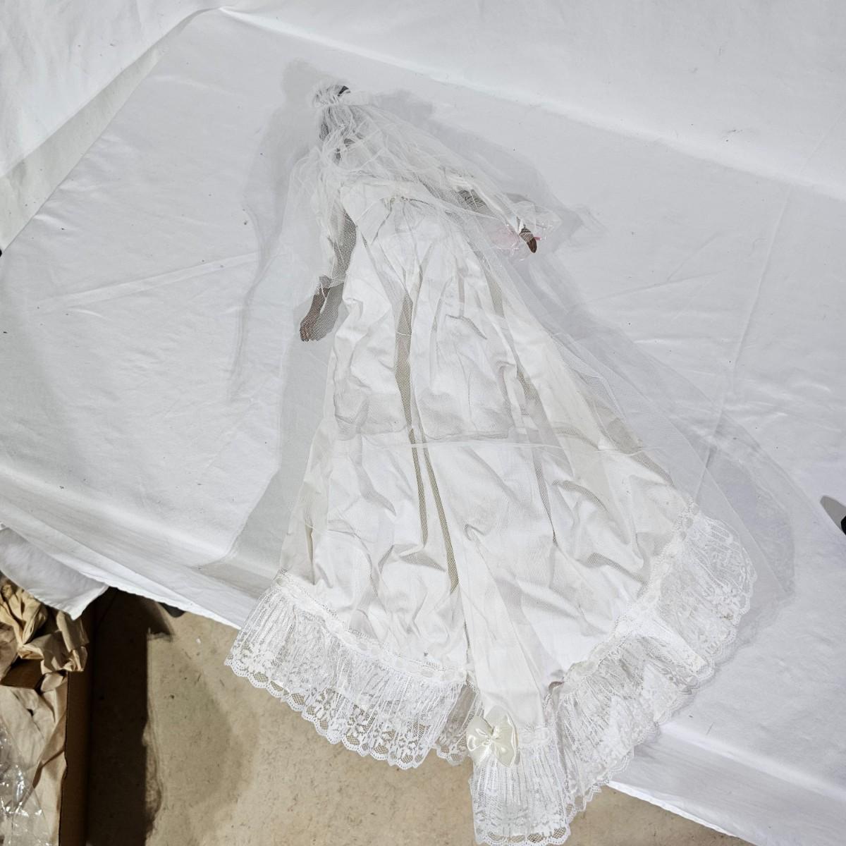 Two collectible dolls by Daddy's Long Legs of Texas. Both in original boxes, we have Victoria the bride at 21" long with full train dress and veil, and also Ezra at 22" in denim and flannel. Dolls have resin heads, arms and legs, great detail and accessories. See photos for details. Shipping available.