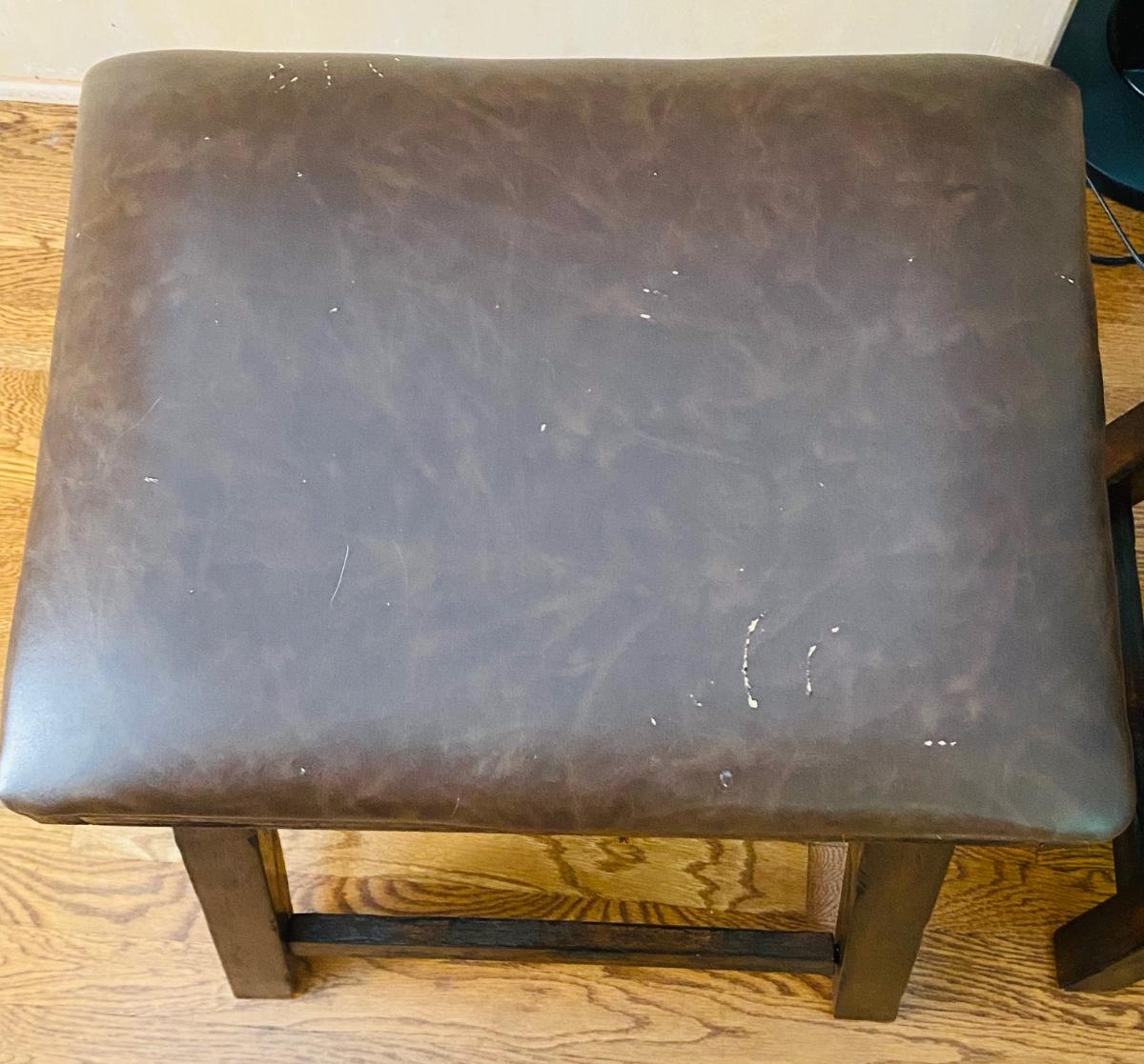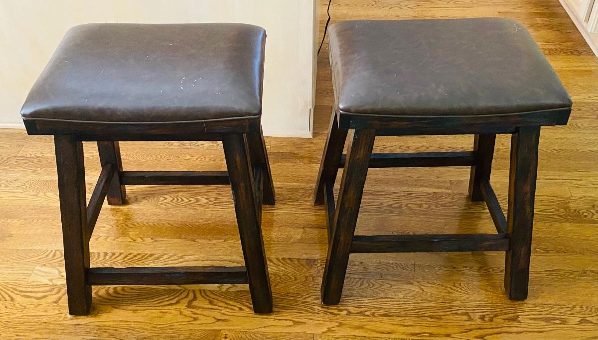 Pair of Dark Wood Barstools with Padded Faux Leather Seats – Counter Height