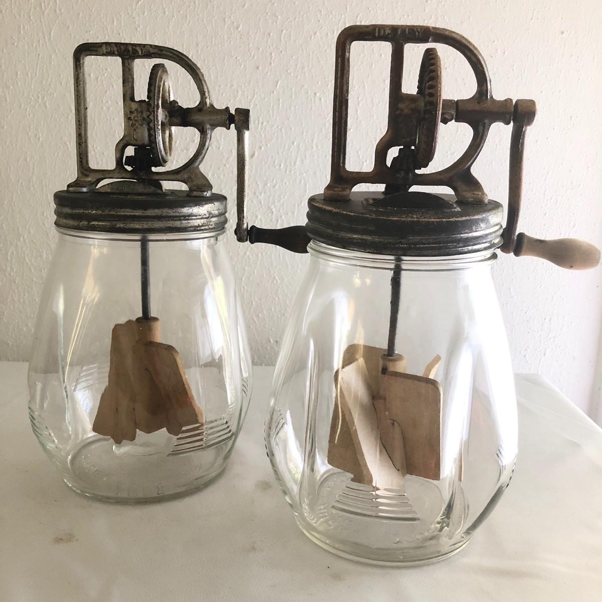 A matching pair of vintage glass/metal Dazey churns by the Dazey Corporation. Both are in excellent working condition. One is numbered 40B, the other JBB.