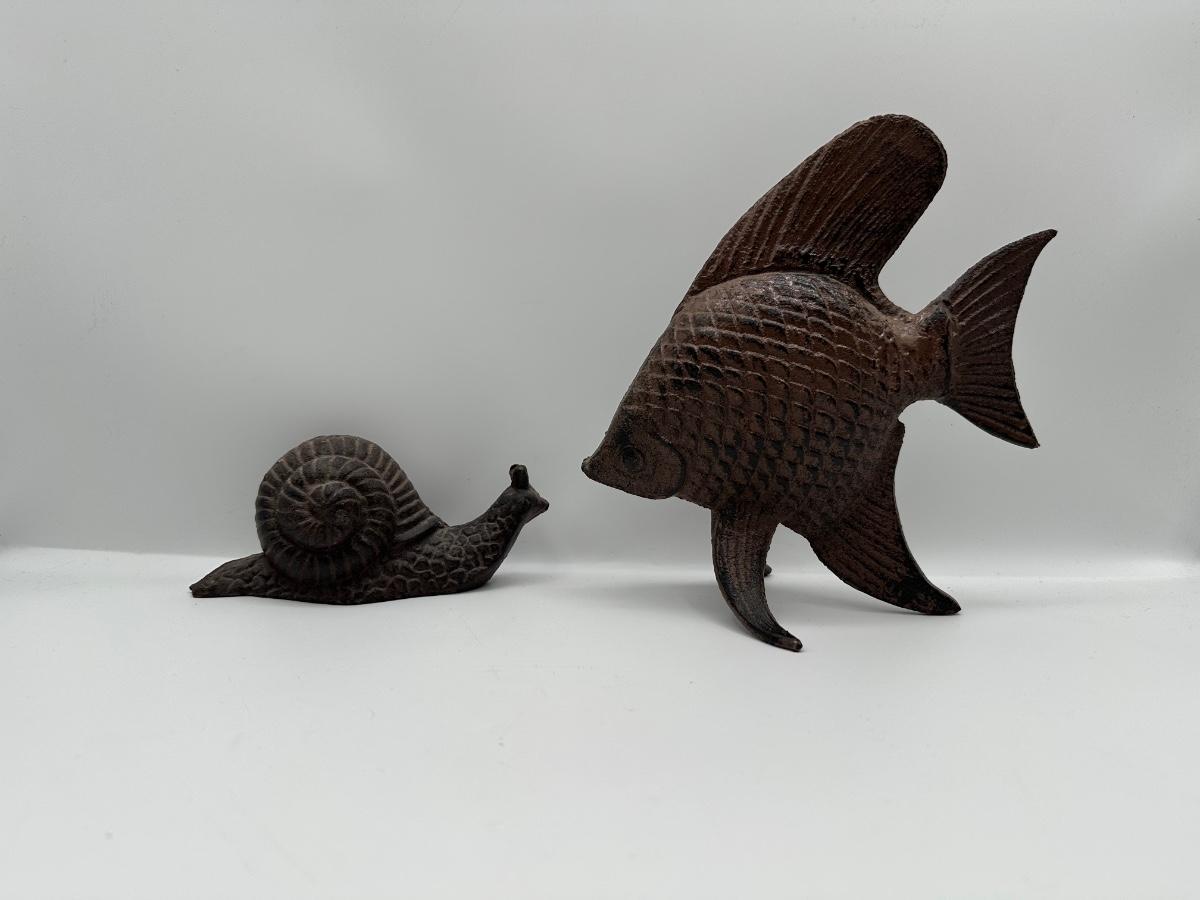 Pair of Decorative Cast Iron Figures — Fish & Snail
