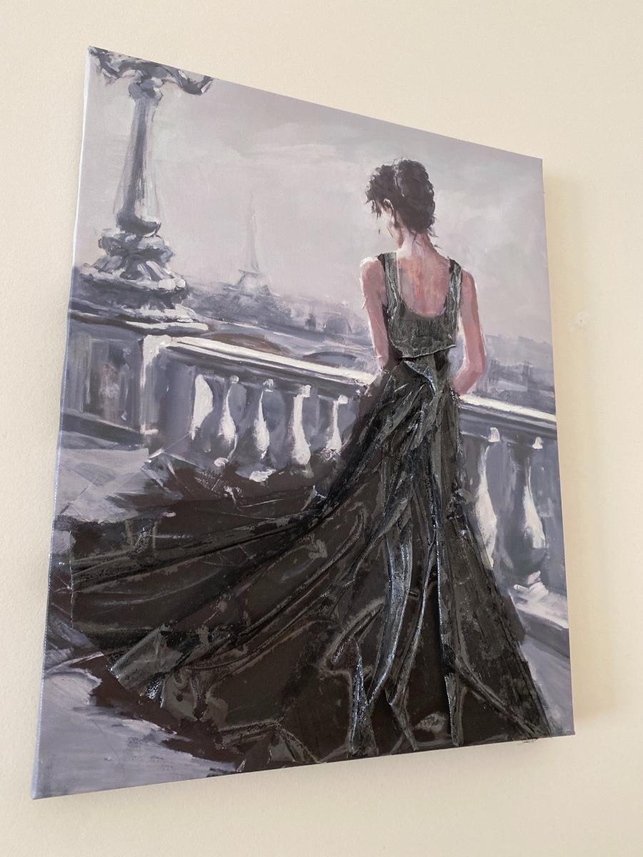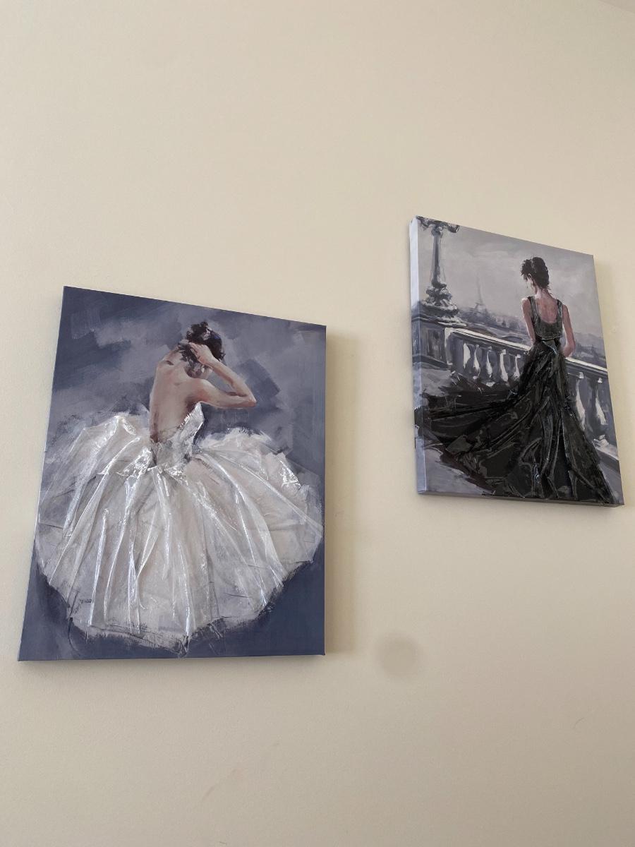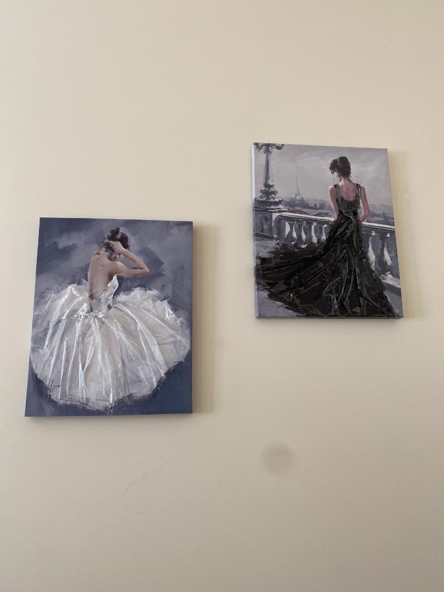 Pair of Decorative Mixed Media Prints on Canvas of Ladies in Evening Gowns