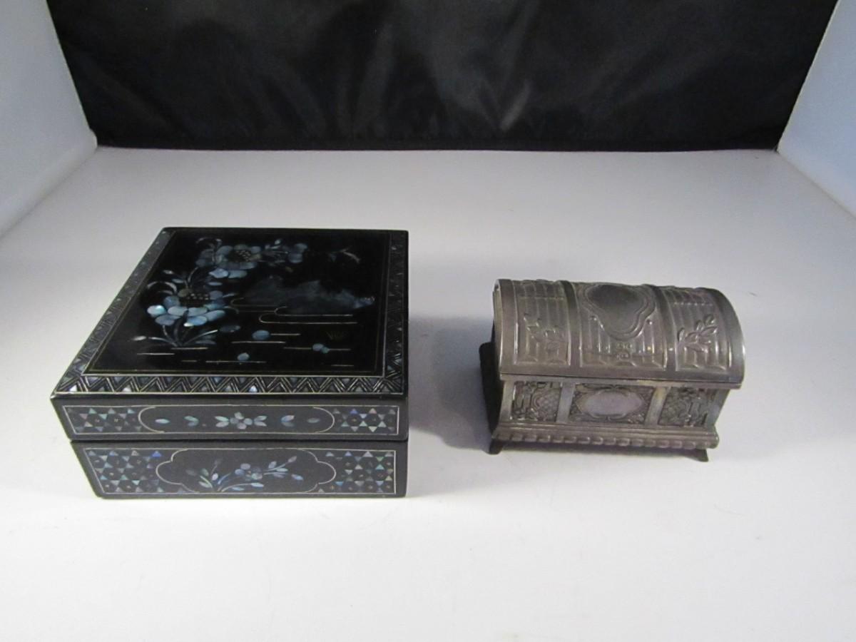 Pair of Decorative Trinket Boxes includes Mother of Pearl Inlay Box