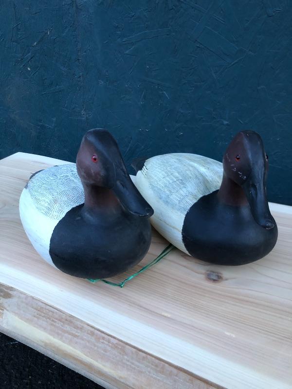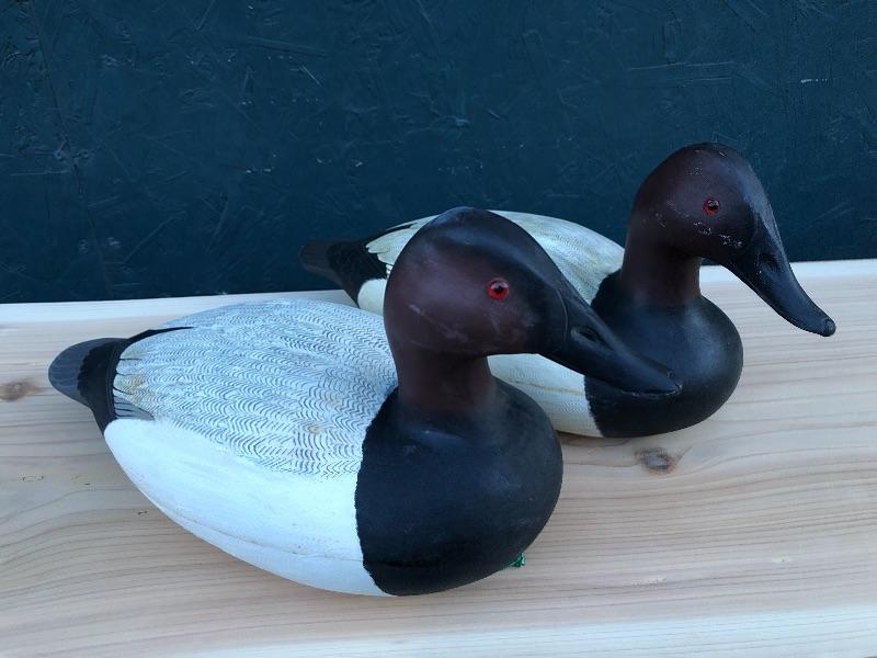 Both decoys are 17" in length. The feathering painting detail is gorgeous in person!