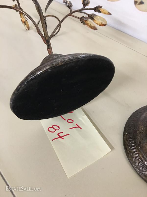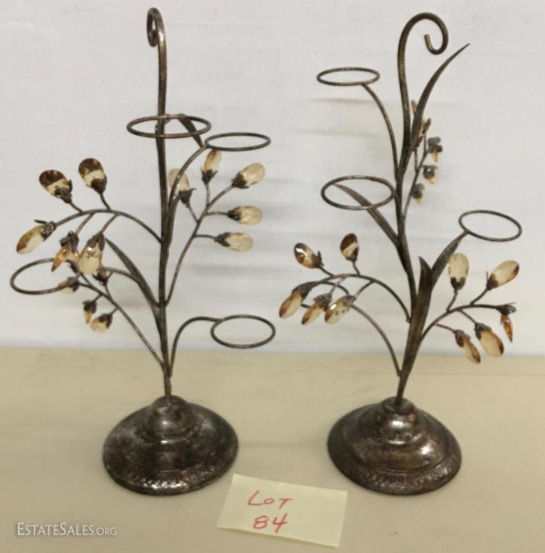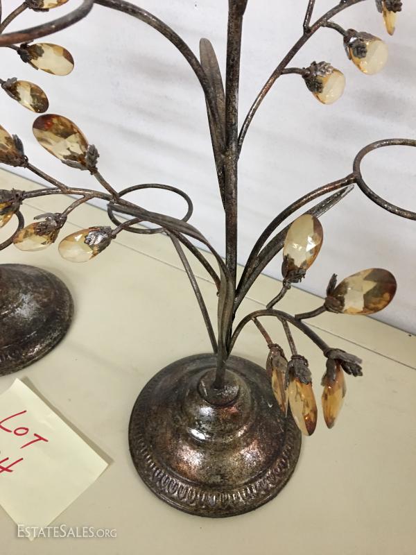 Measure 20" tall, antiqued finish. Metal with glass crystal accents.