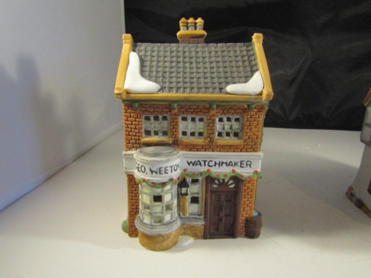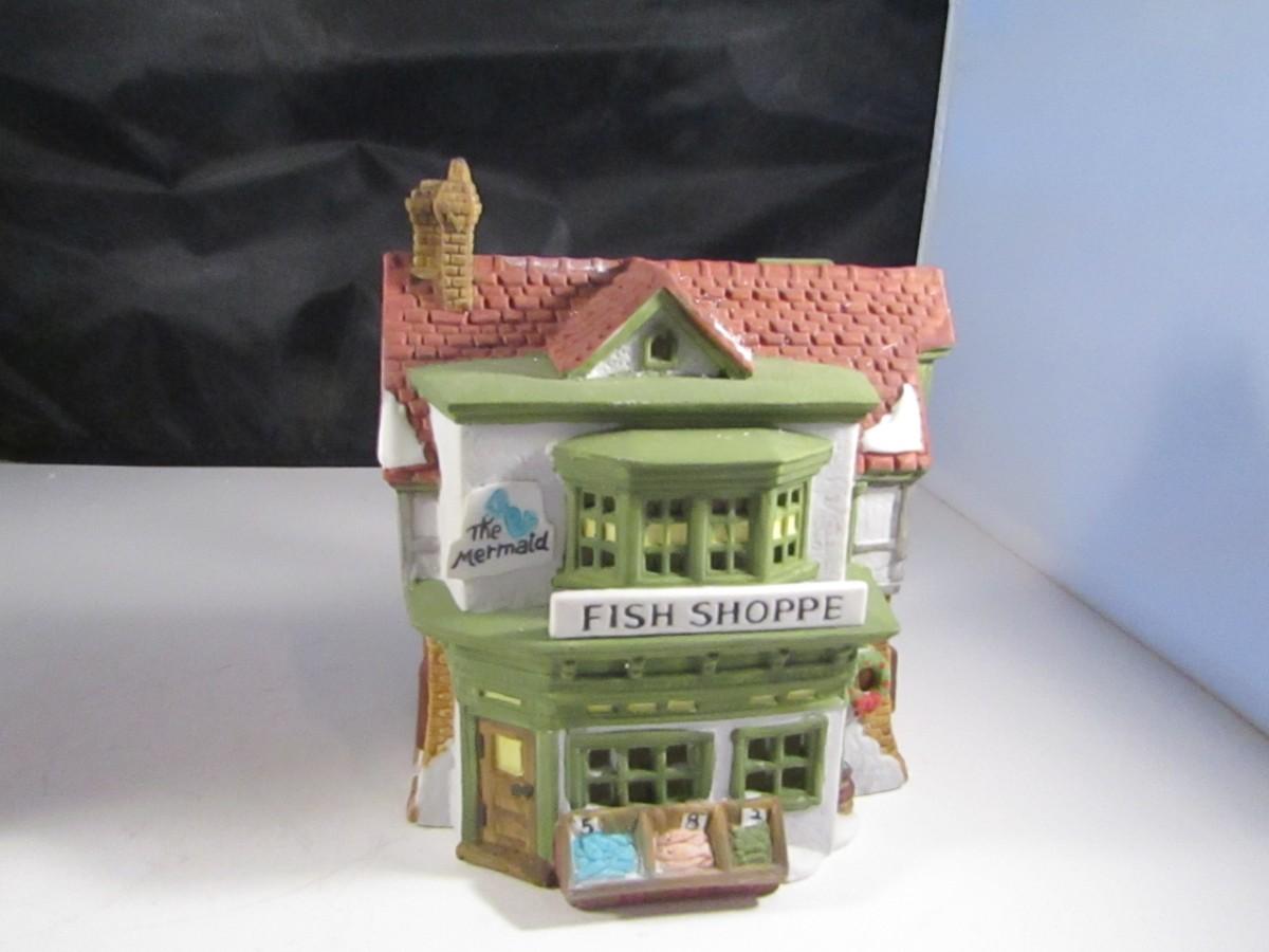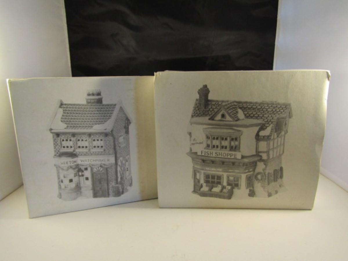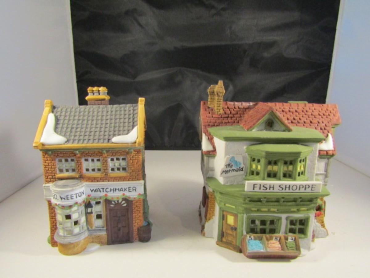 Pair of Department 56 Shops of Dicken's Village Weeton Watchmaker and the Mermaid Fish Shoppe #9