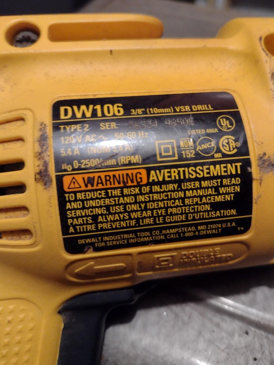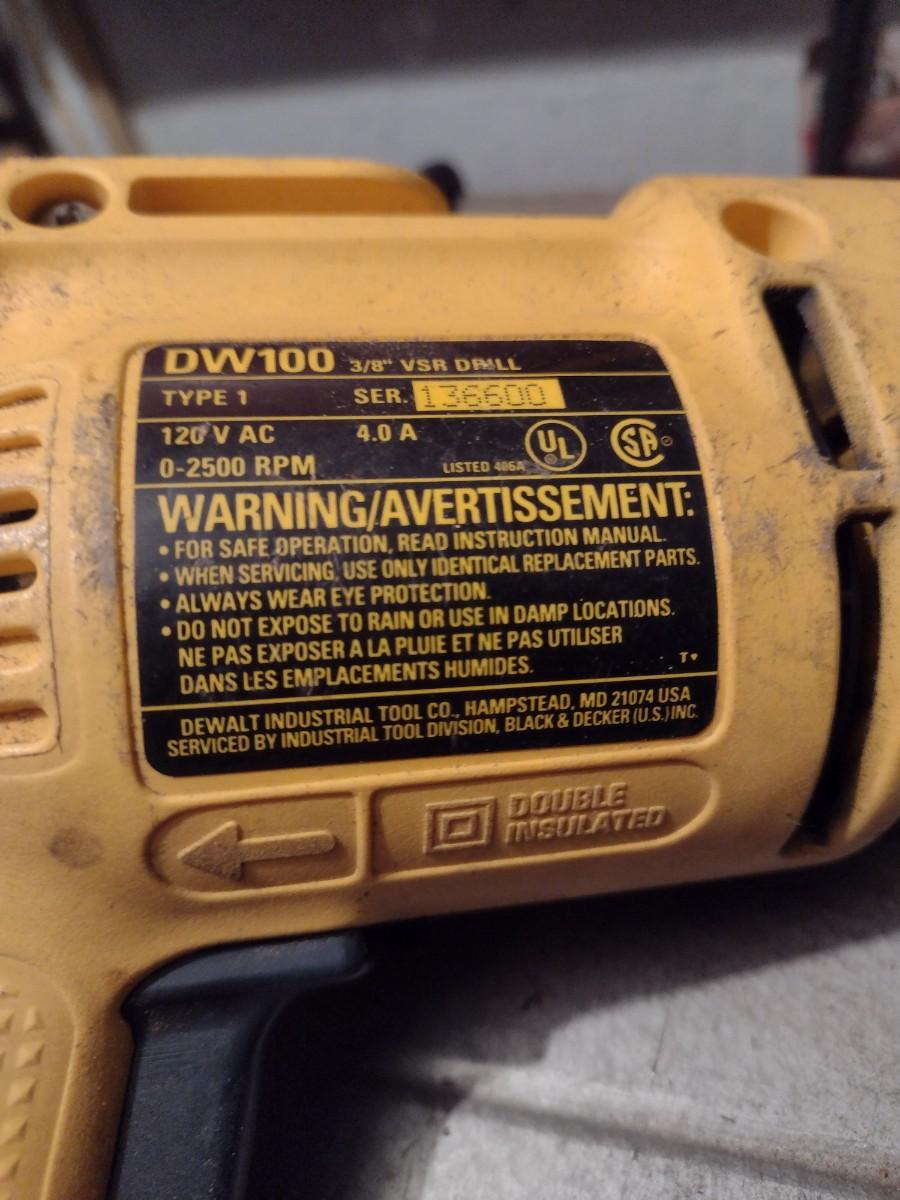 Pair of DeWalt Electric Power Drills cord is frayed on D100 as shown