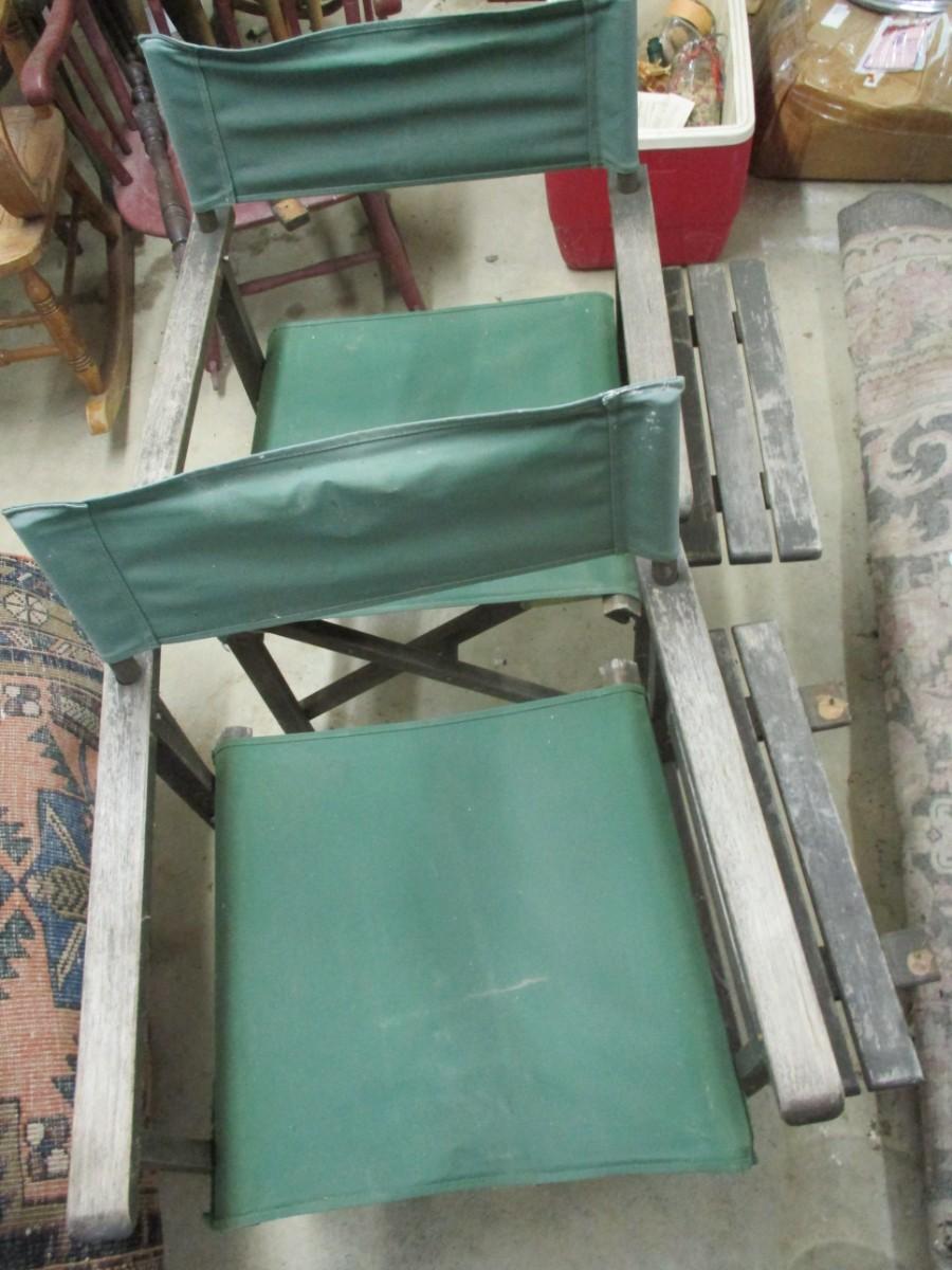 Pair of Vintage Wood Framed Folding Camp Chairs