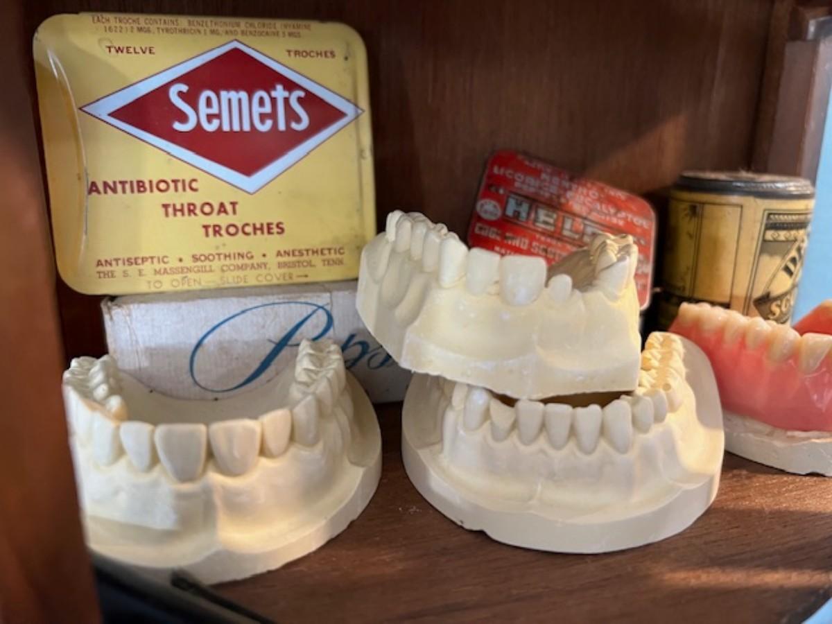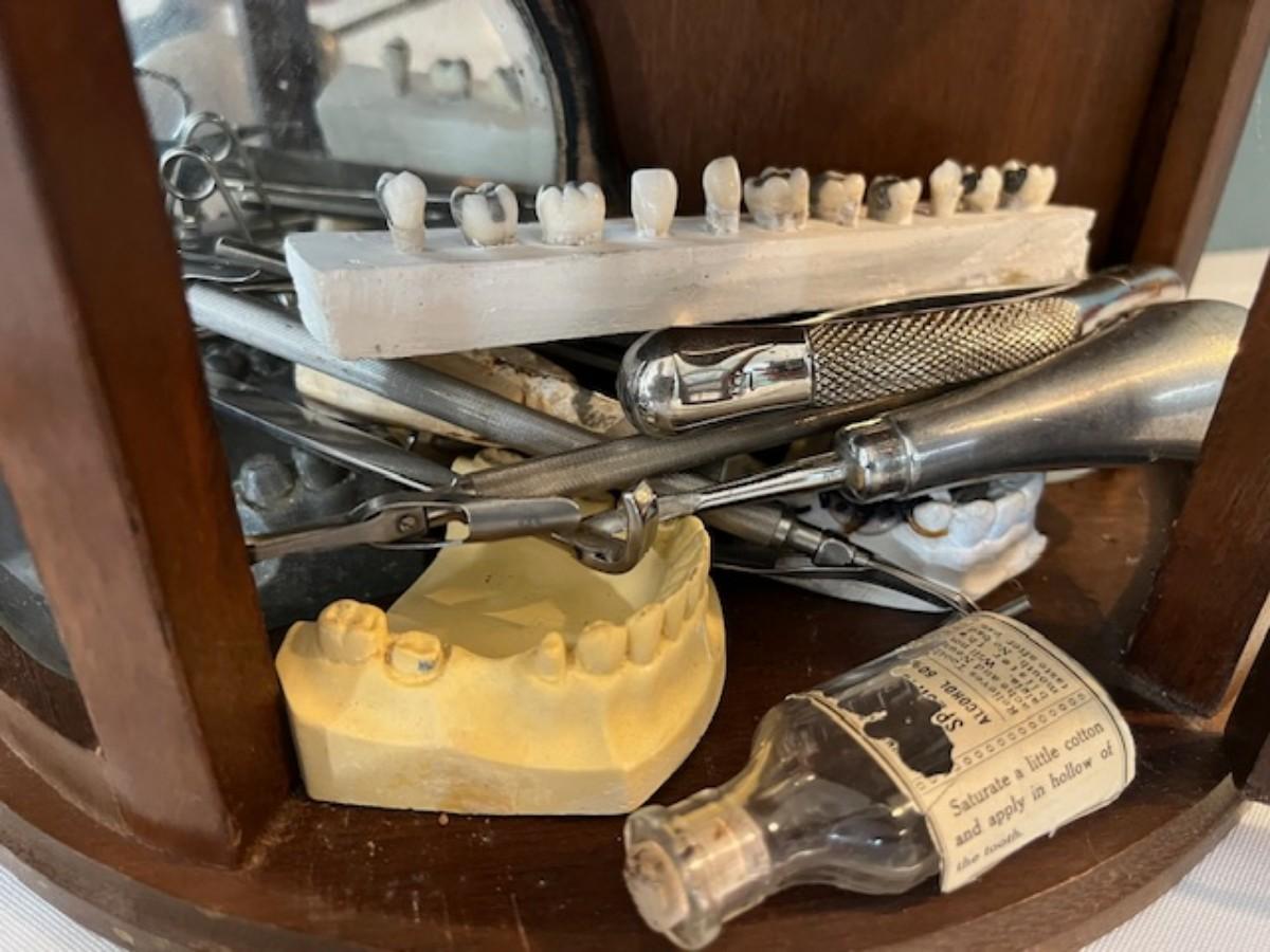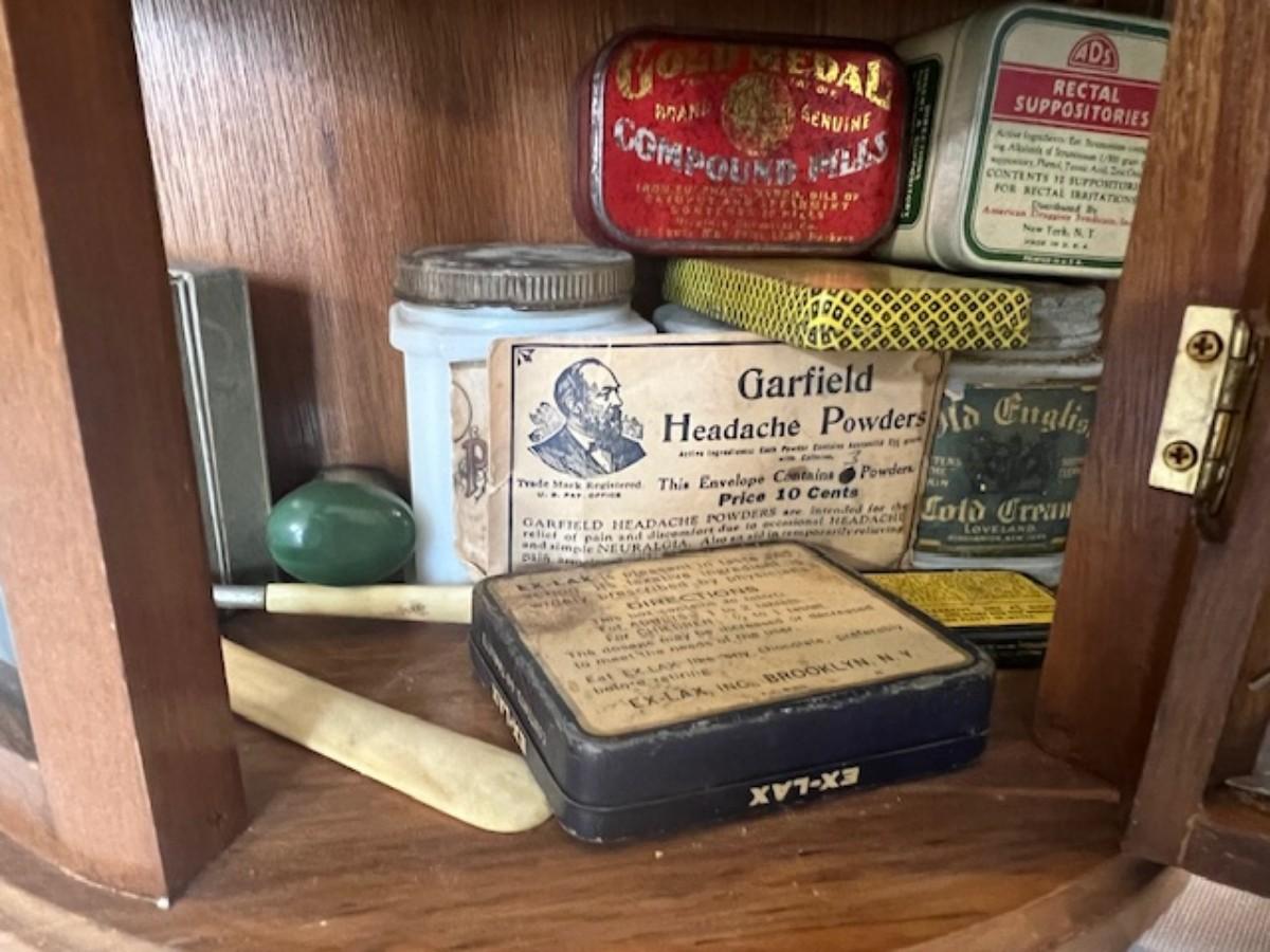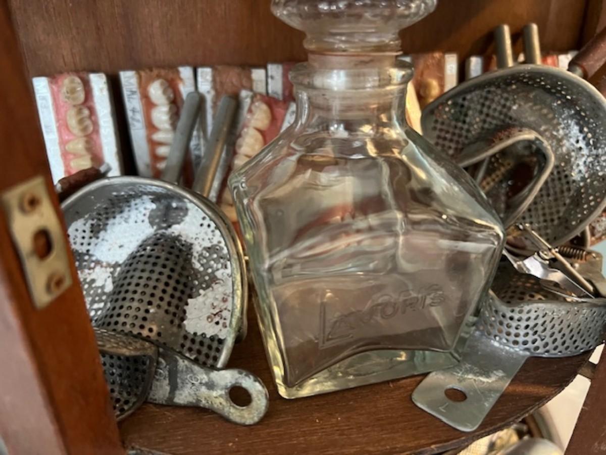 Contents include medical and dental bottles and accessories. Total of 40+ pieces in two cabinets. Measurement of cabinets: 19"H x 13"W (each).