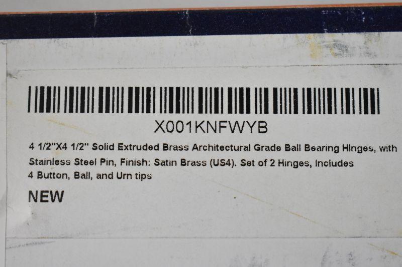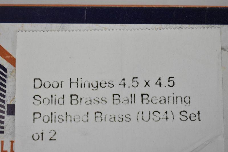 Pair of Door Hinges 4.5x4.5 Solid Brass Ball Bearing Polished Brass (US4) - New