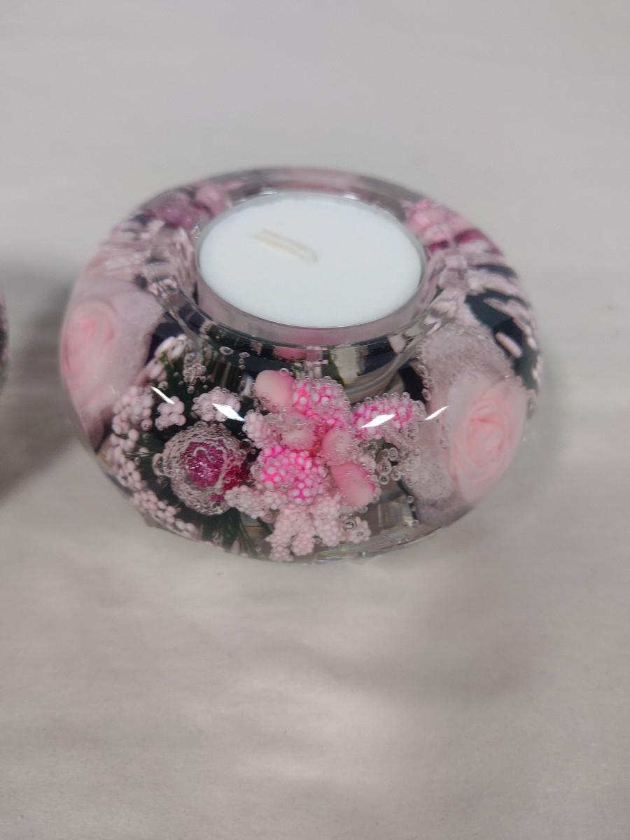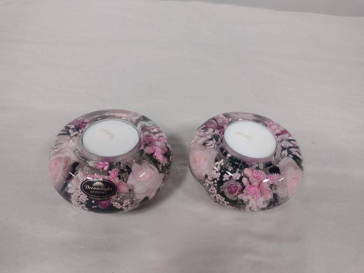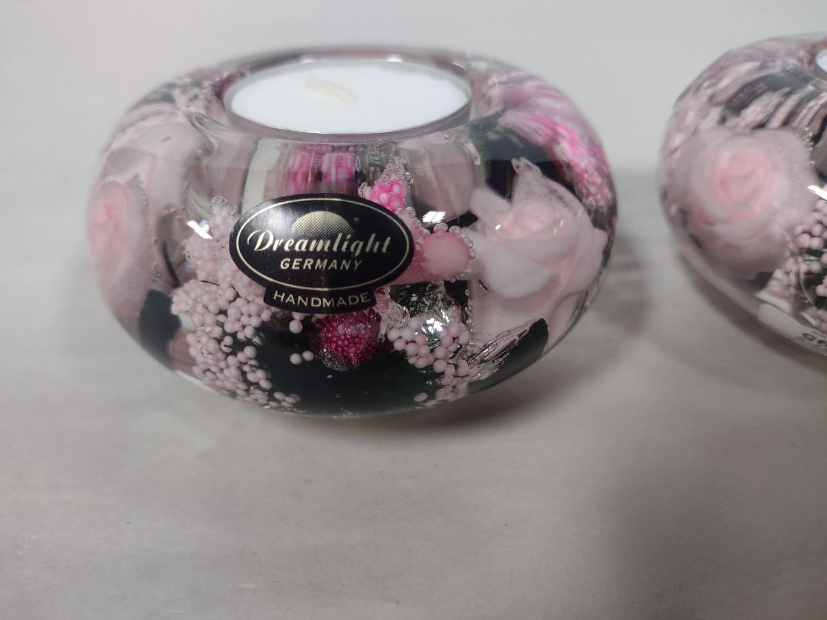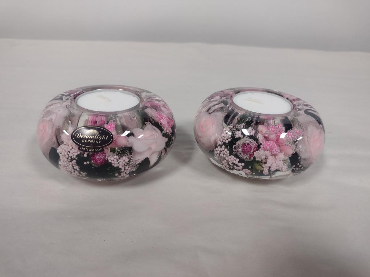 Pair of Dreamlight Traumlicht Glass Candle Holders- Small Round with Pink Roses- Choice #2 of 2