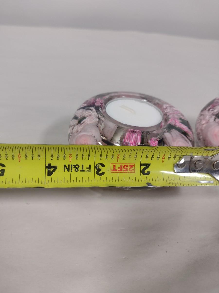 Pair of Dreamlight Traumlicht Glass Candle Holders- Pink Roses- Choice #2 of 2. Approx 3½" in diameter. Hand made in Germany.