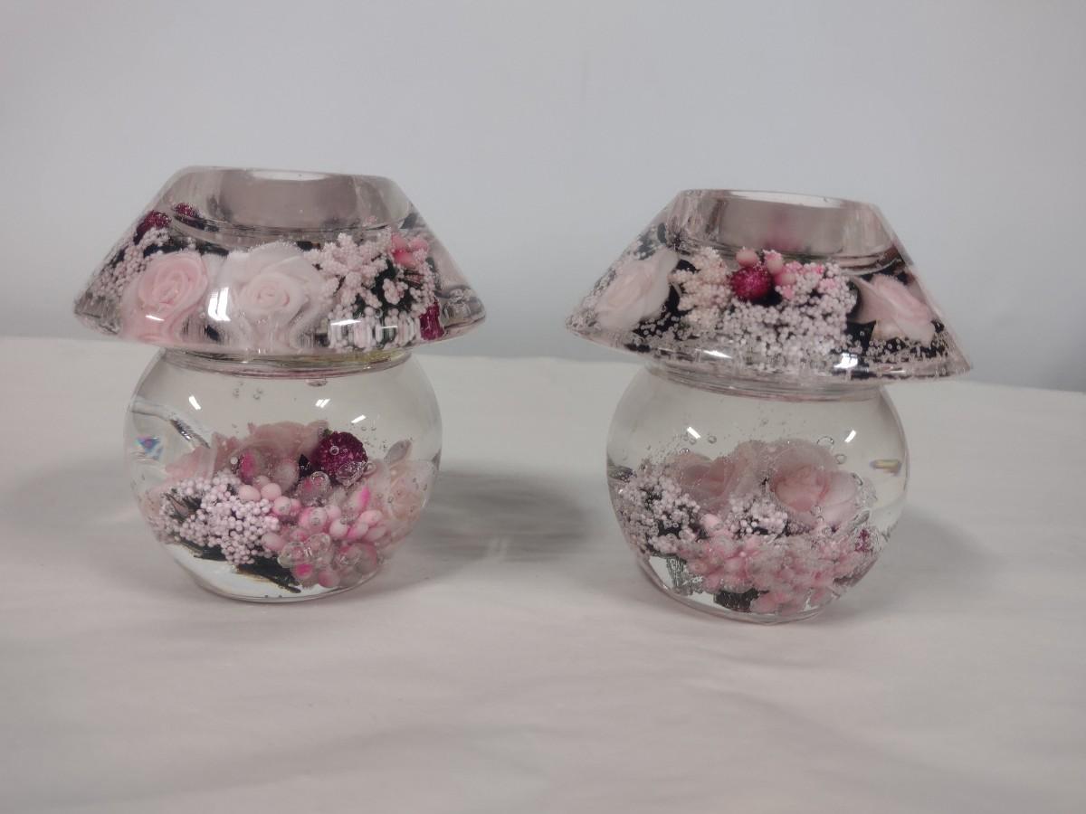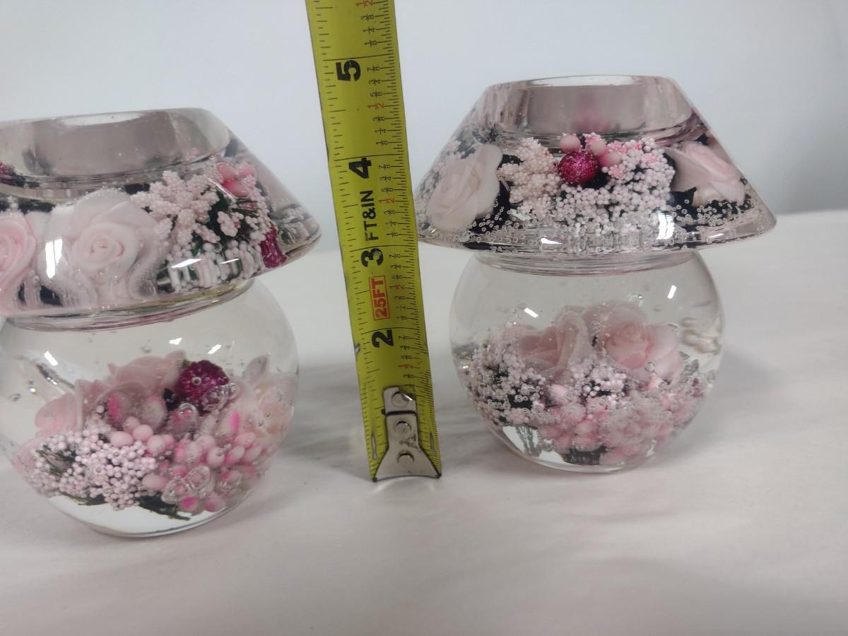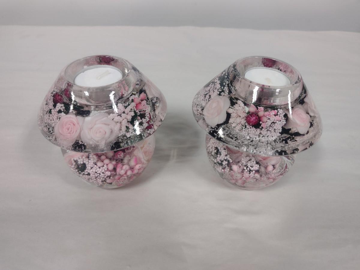 Pair of Dreamlight Traumlicht Glass Candle Holders- Mushroom Shape with Pink Roses- Choice #1 of 2