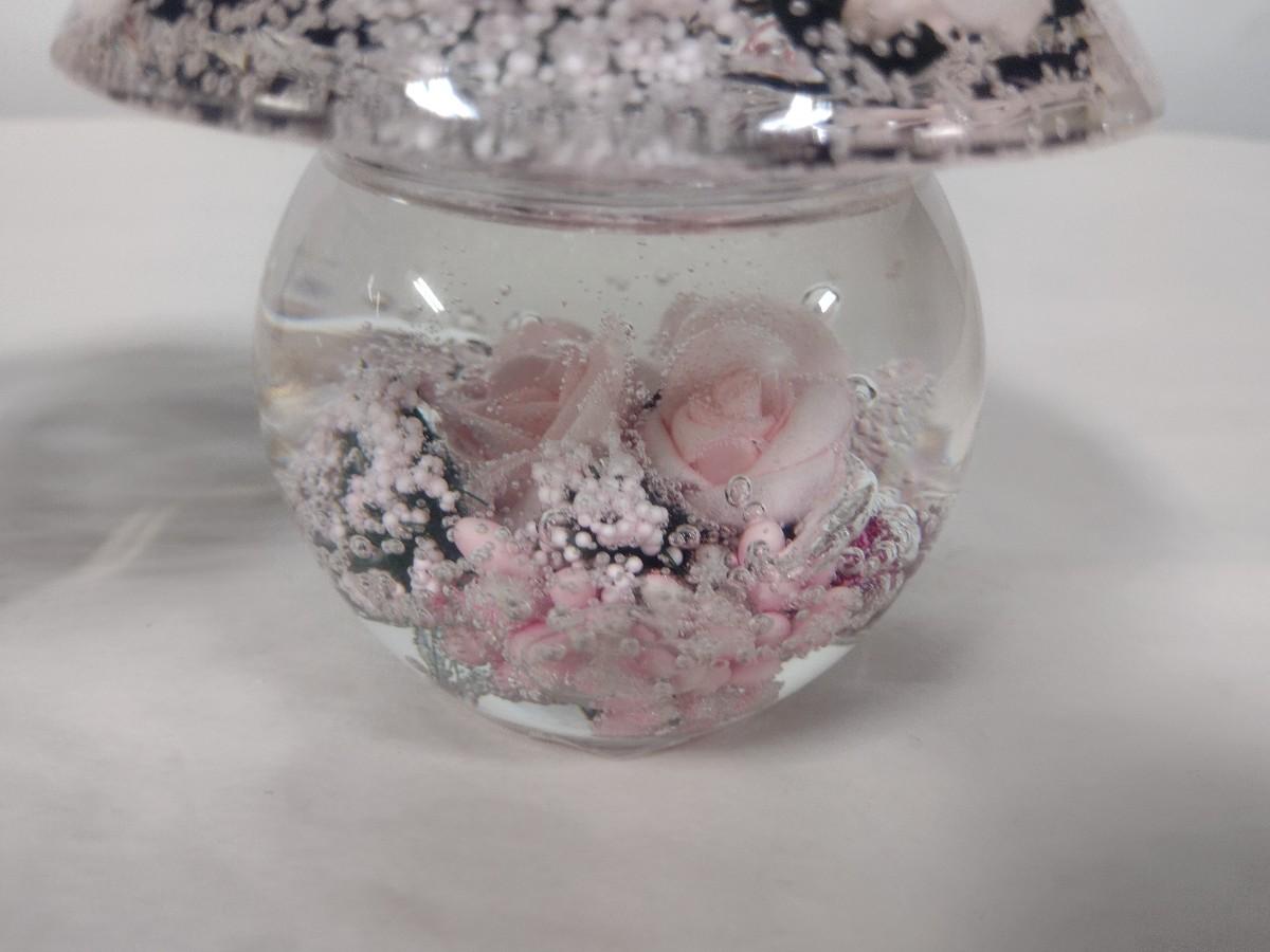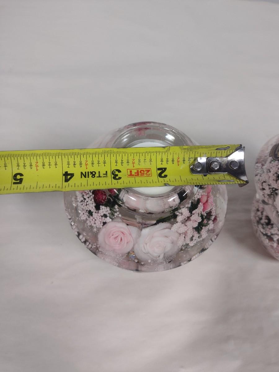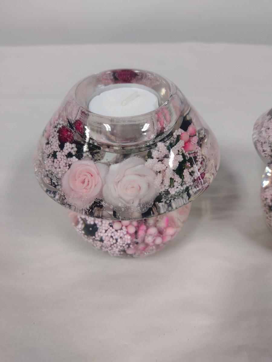 Pair of Dreamlight Traumlicht Glass Candle Holders- Mushroom Shape with Pink Roses- Choice #1 of 2