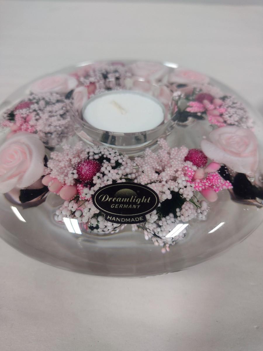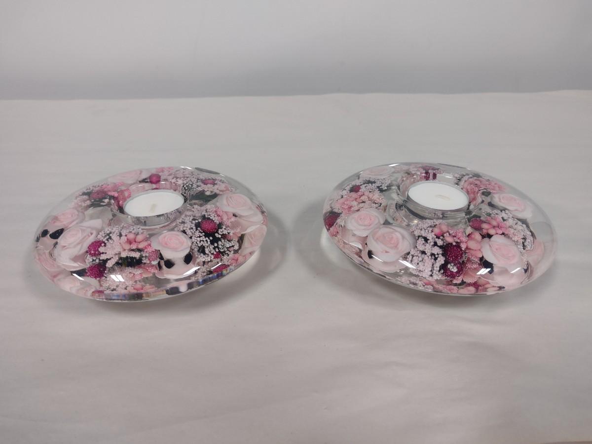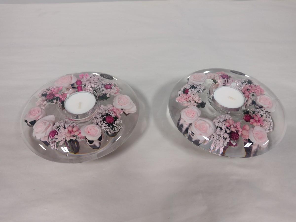Pair of Dreamlight Traumlicht Glass Candle Holders- Large Round with Pink Roses