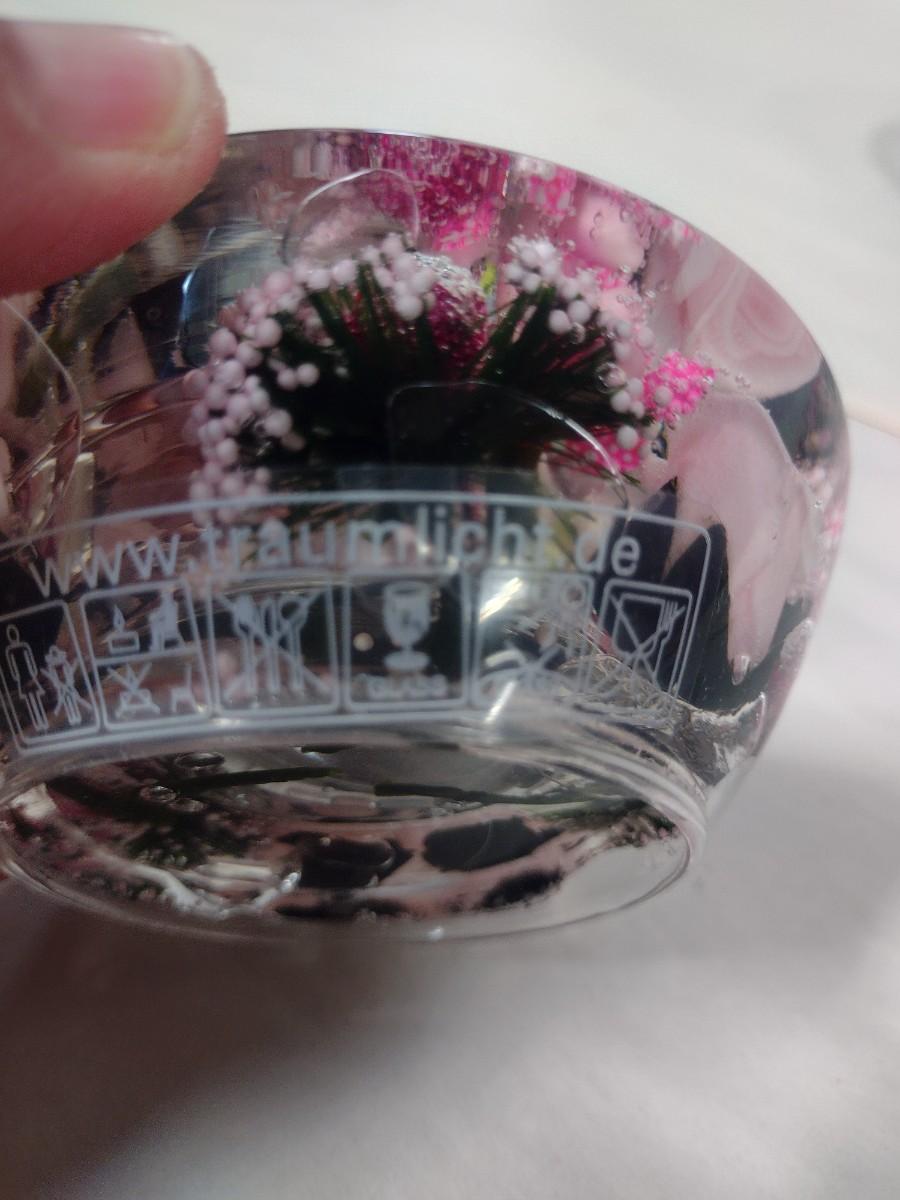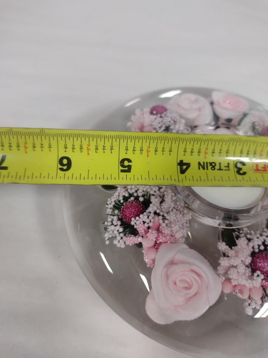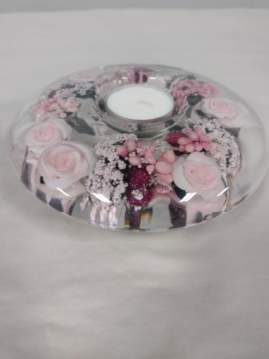 Pair of Dreamlight Traumlicht Glass Candle Holders- Large Round with Pink Roses
