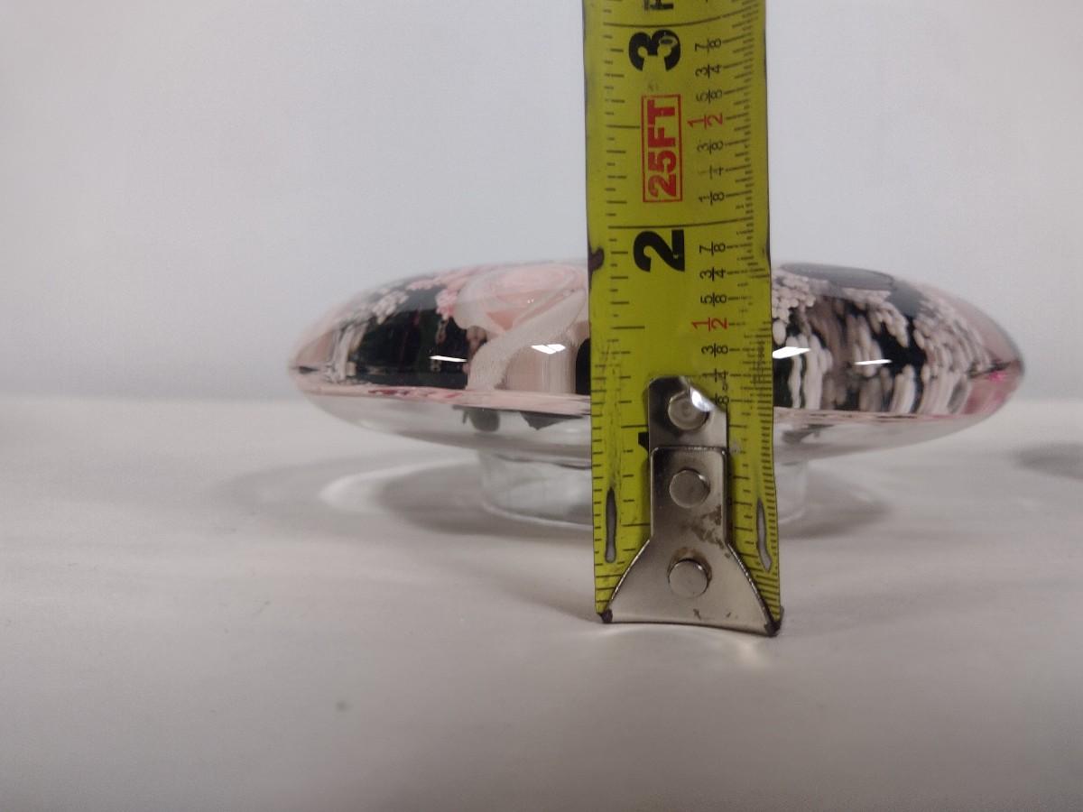 Pair of Dreamlight Traumlicht Glass Candle Holders- Large Round with Pink Roses. Nearly 6" in diameter. Hand made in Germany.