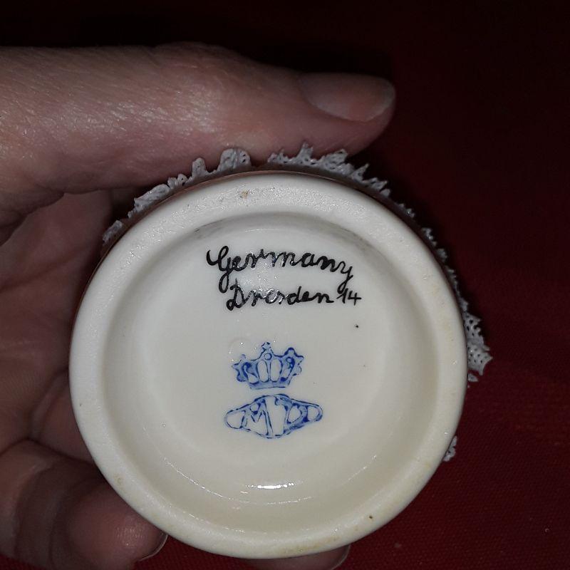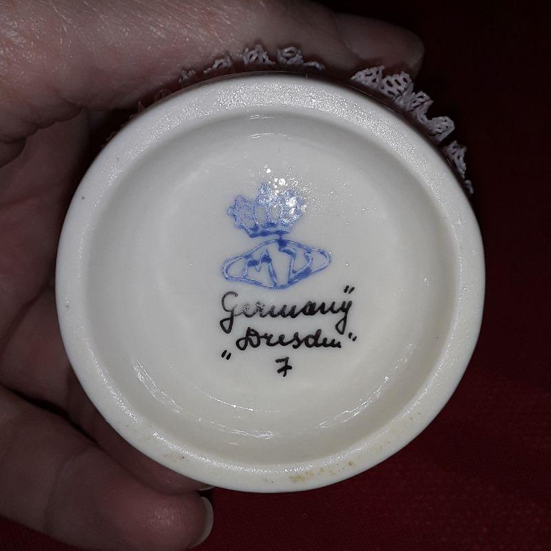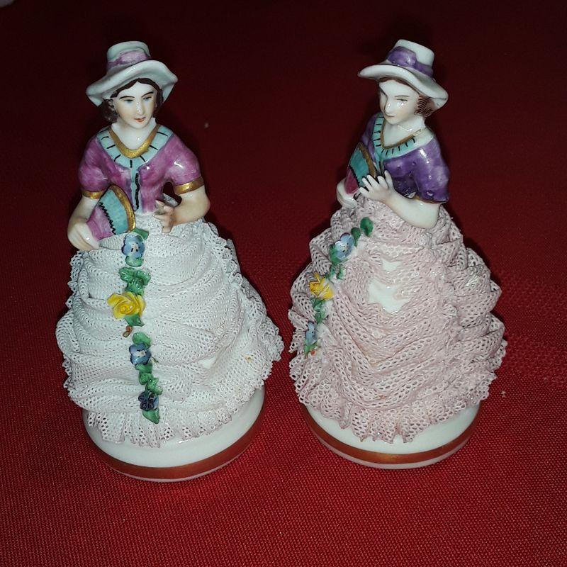 Pair of Dresden Lace Figurine MV Blue Crown Germany
