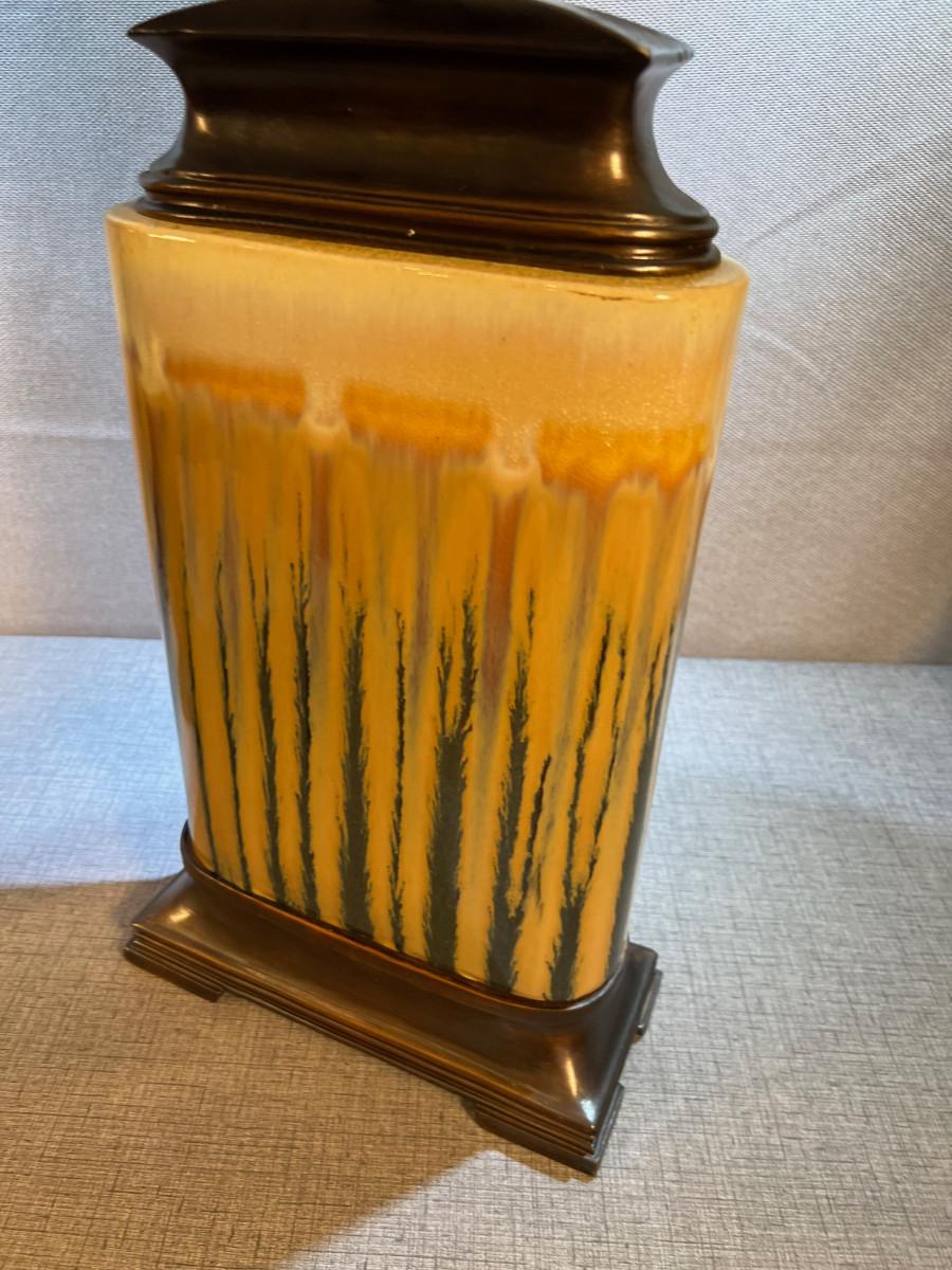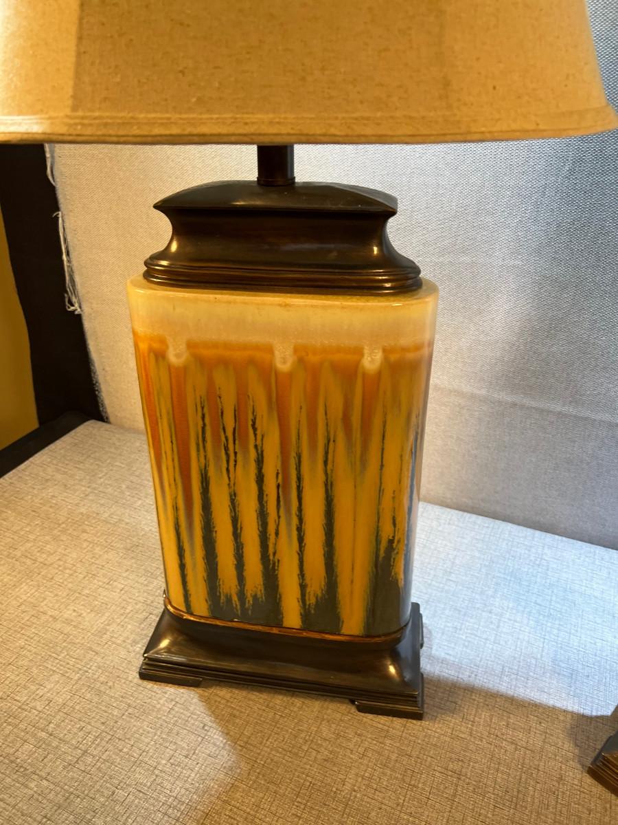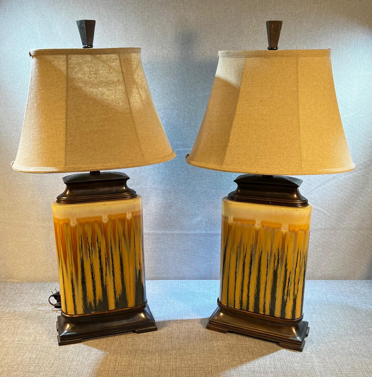 Pair of Drip Golden Rod & Blue LAMPS, Ceramic