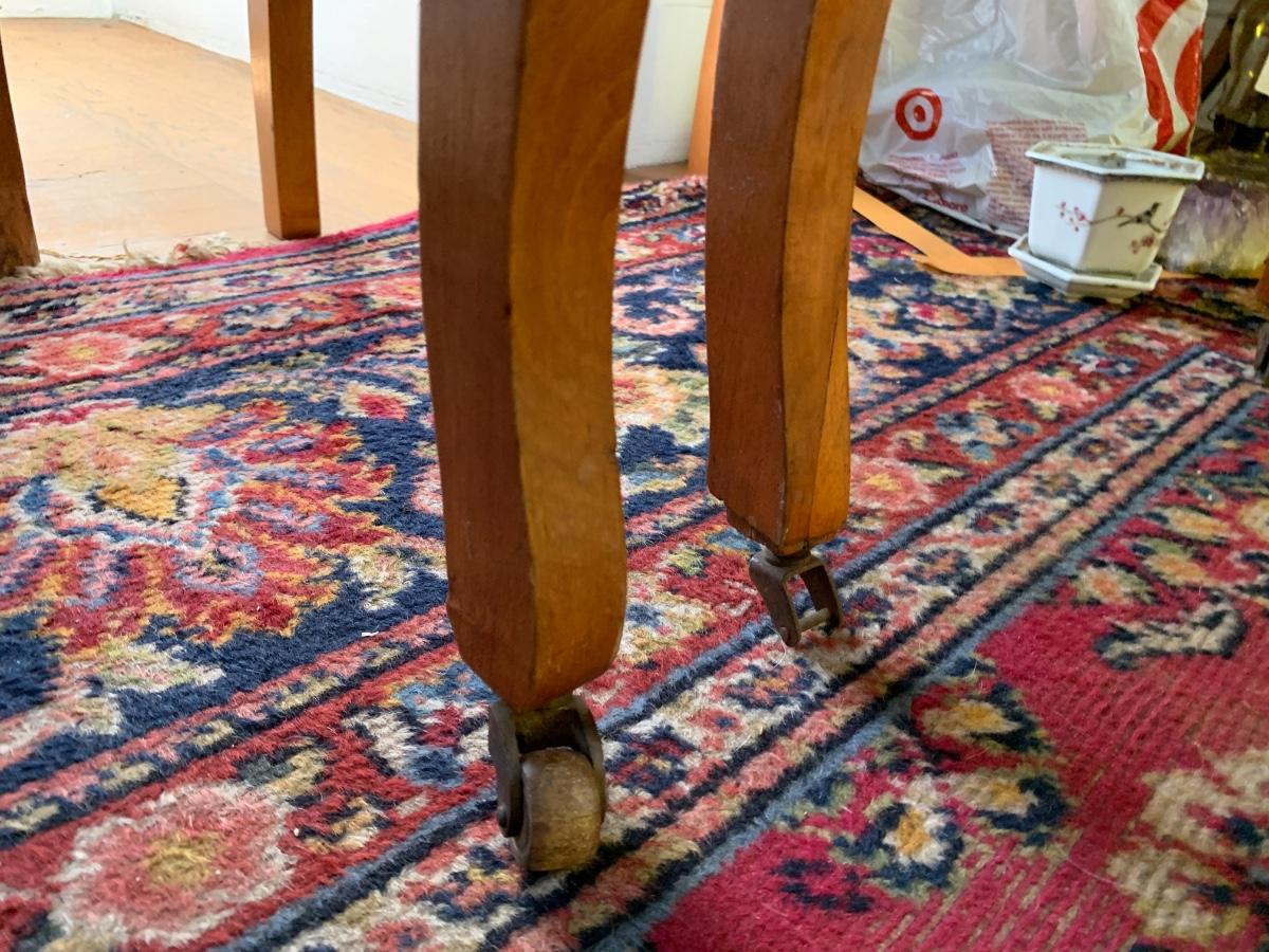 Casters on front legs; one caster is broken