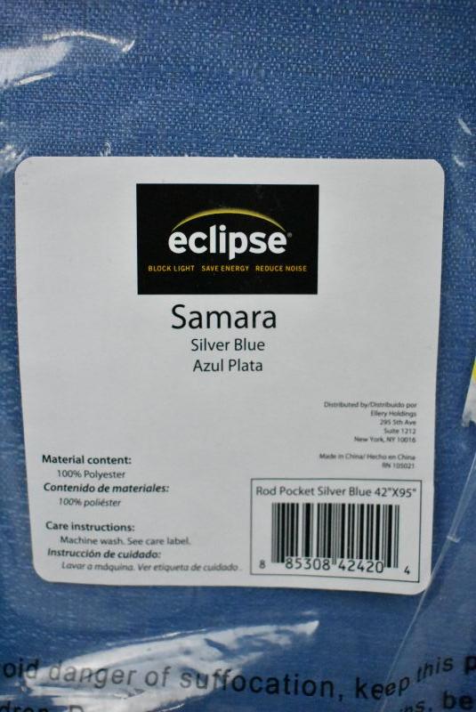 Eclipse Samara Blackout Energy-Efficient Thermal Curtain Panels, Silver Blue, 42" x 95" Each, Set of 2 - New