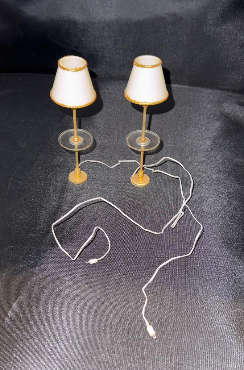 Pair of Electrified Floor Lamps - Lundby Vintage Miniature Dollhouse Furniture 1:12 Scale