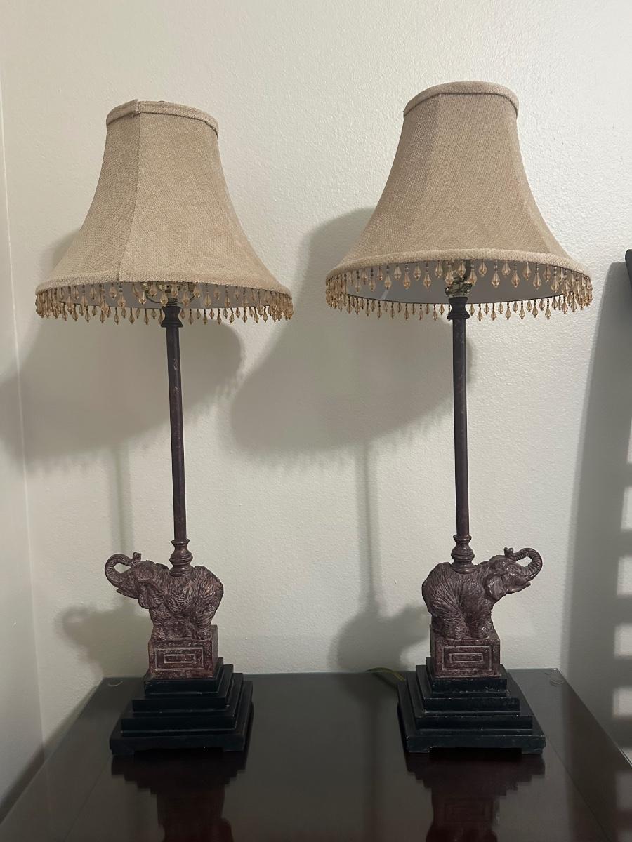 Pair of Elephant Table Lamps with Shades