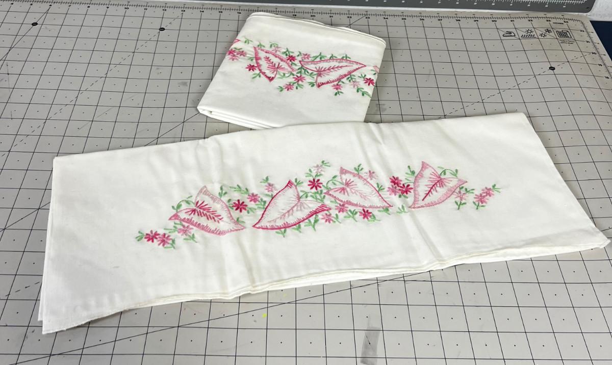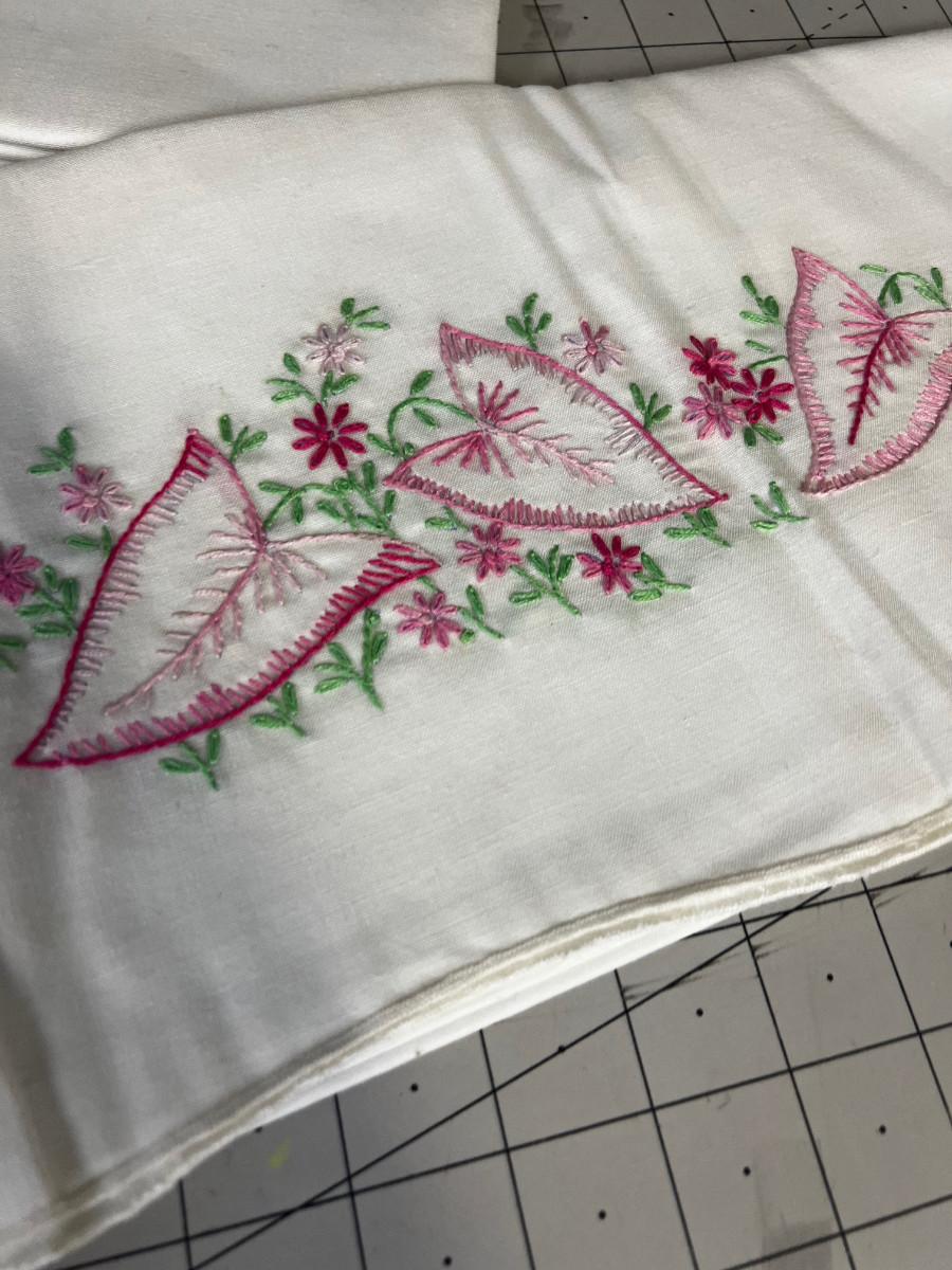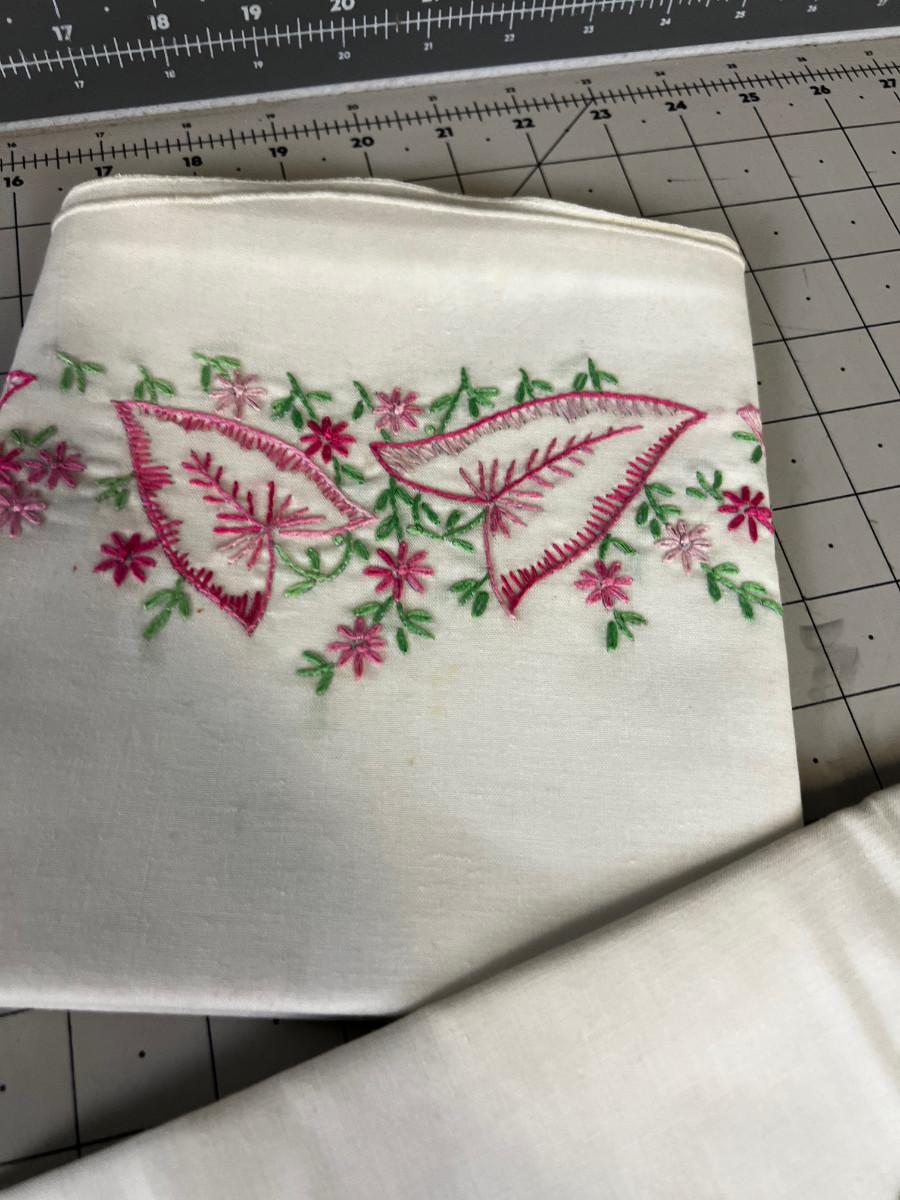 Pair of Embroidered Pink Leaf Pillow Cases Std Size